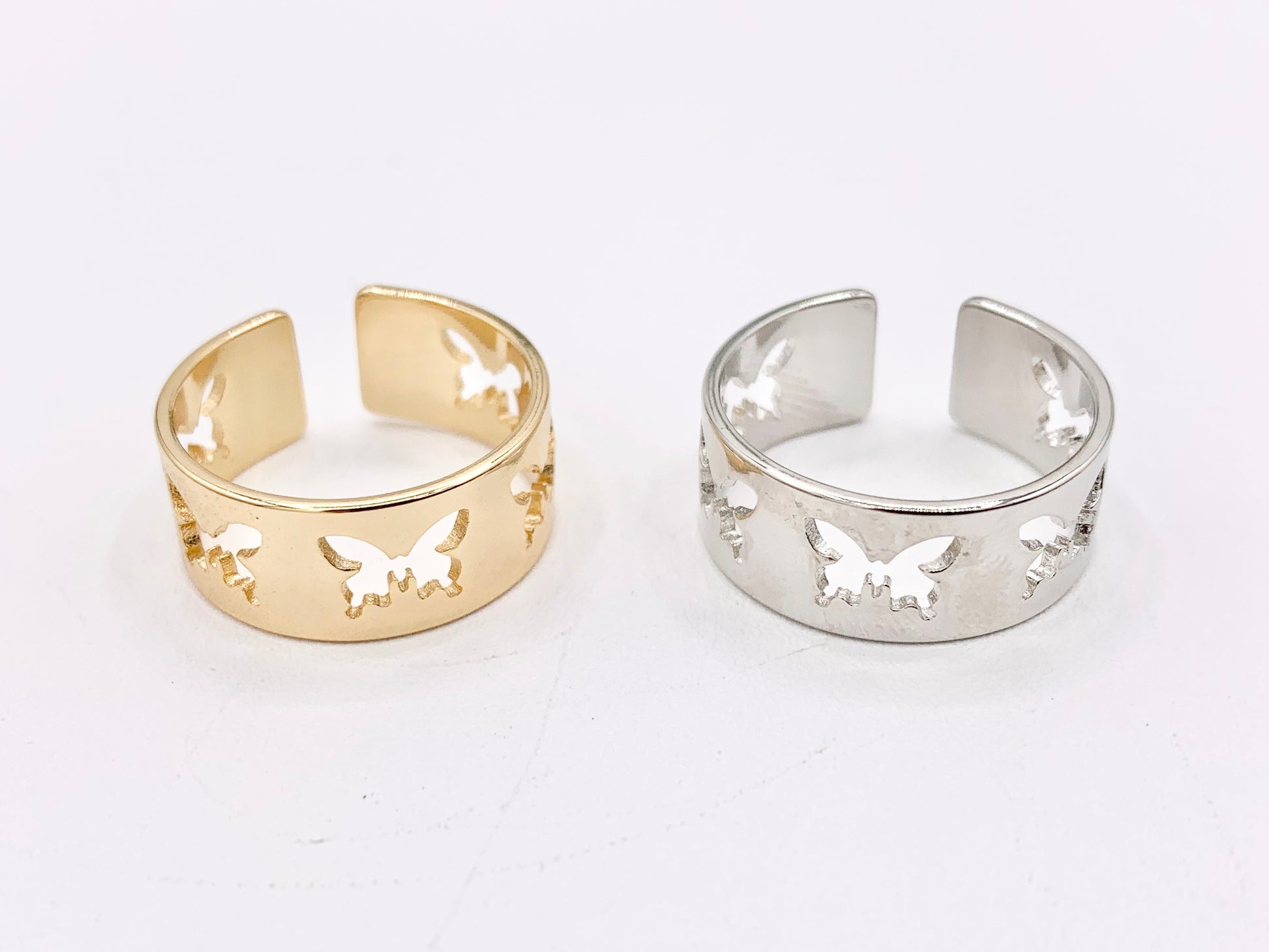 Cute Butterfly Cut Out Thick Band Ring in Real 18K Gold and Platinum Plated 5 PCS