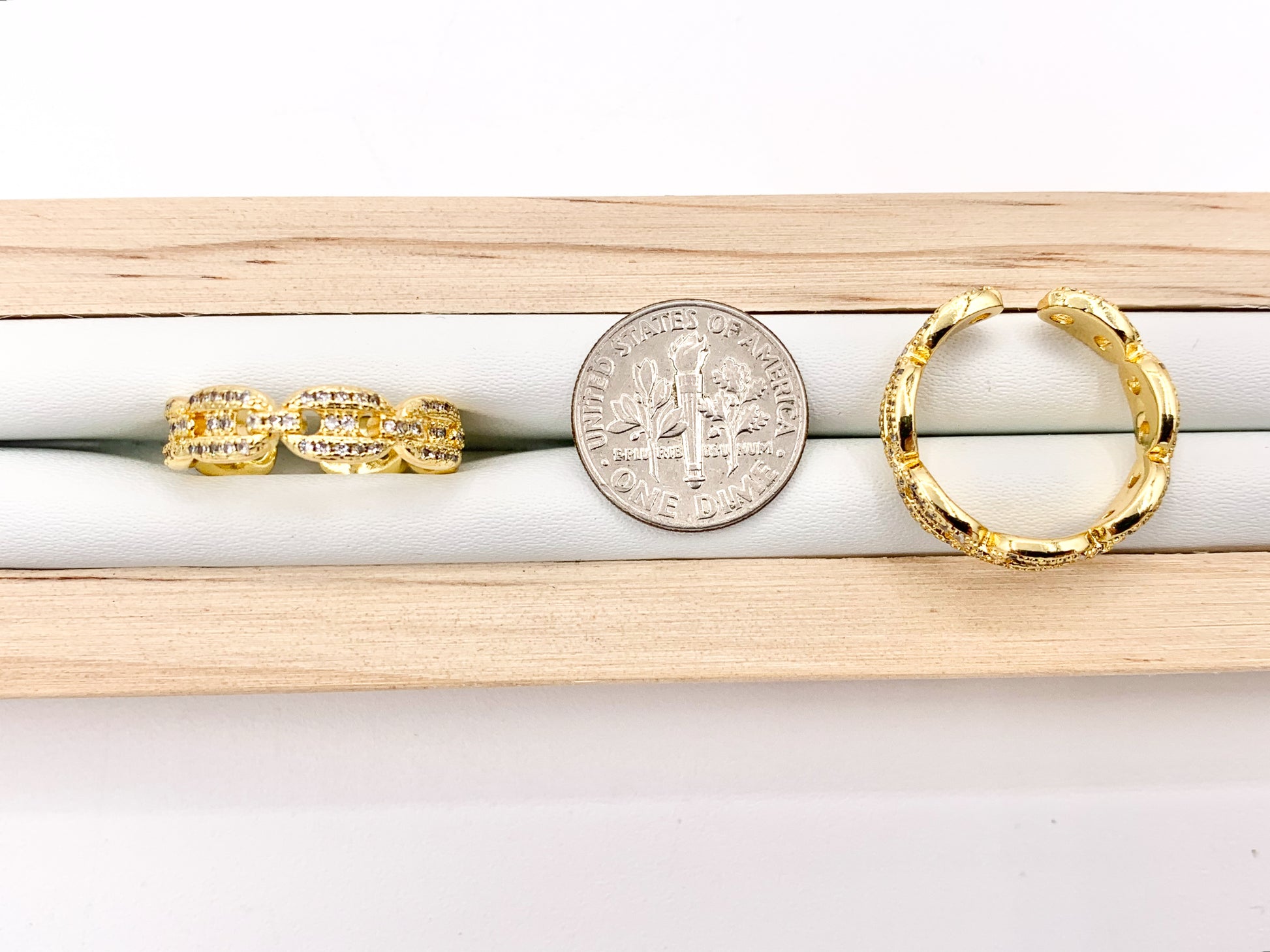Cute Button Coffee Bean Pig Nose Adjustable Ring in 18K Real Gold Plated Copper CZ Pave 5 PCS