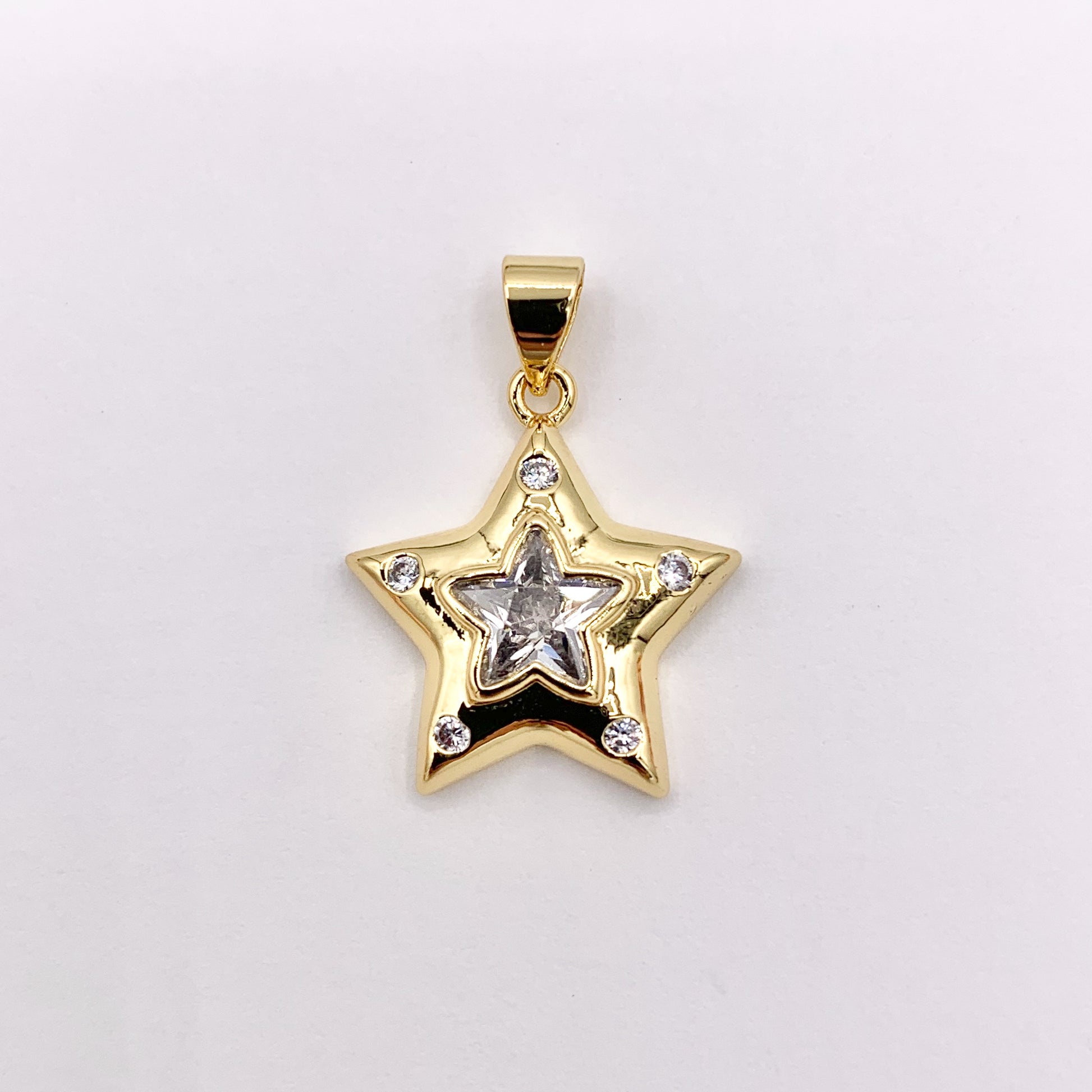 Cute CZ Pave Star Pendant in Real Gold 18K Plated Copper 8 PCS