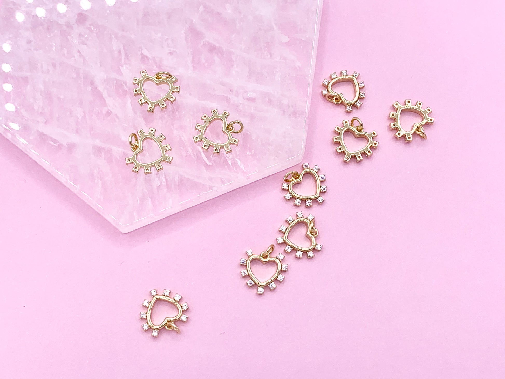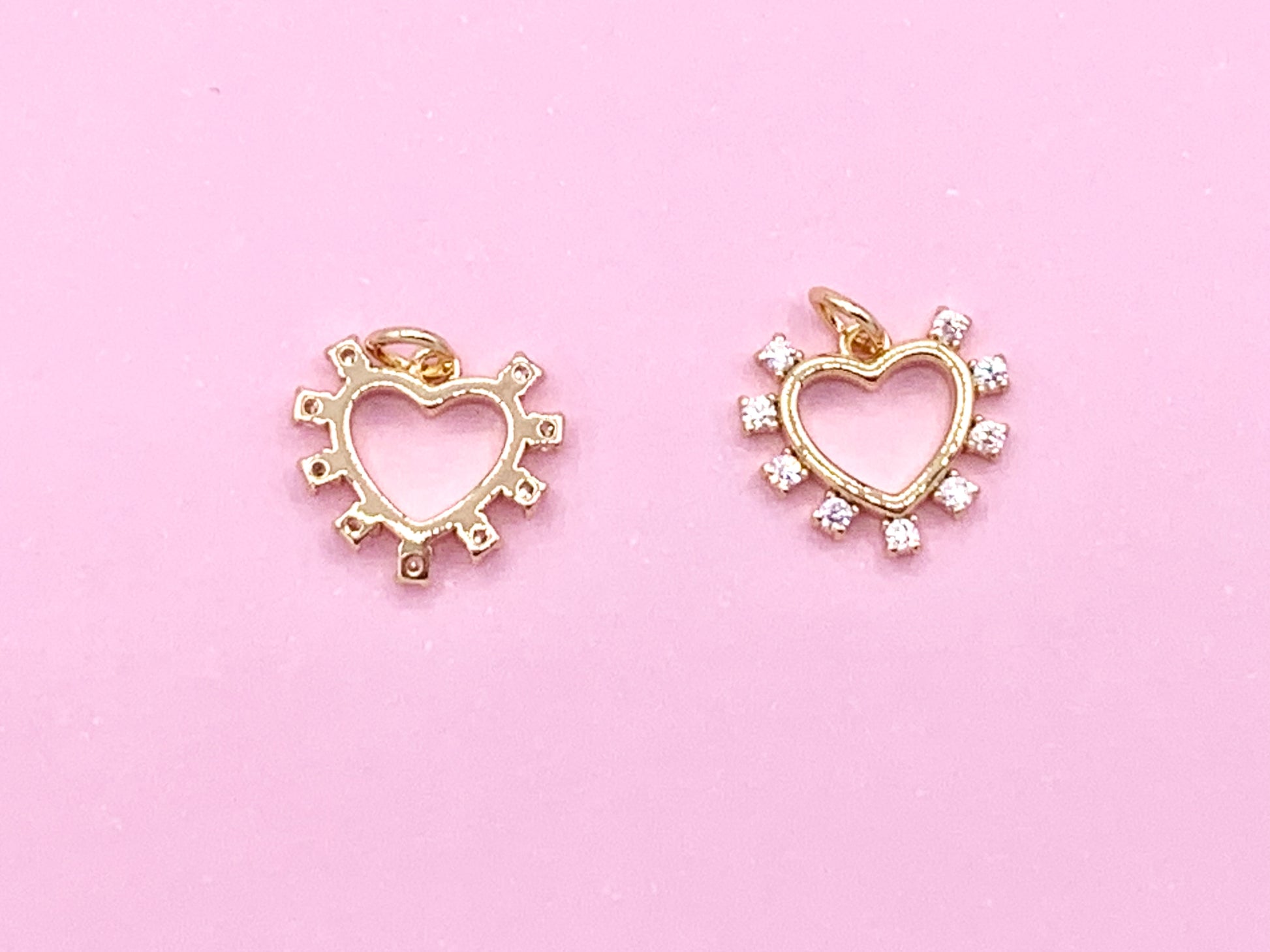 Cute Heart Charms in CZ Pave plated in 18K Gold Copper Base. These charms can be wonderful made into bracelets, dainty necklaces, earring drops and even used for crafts.