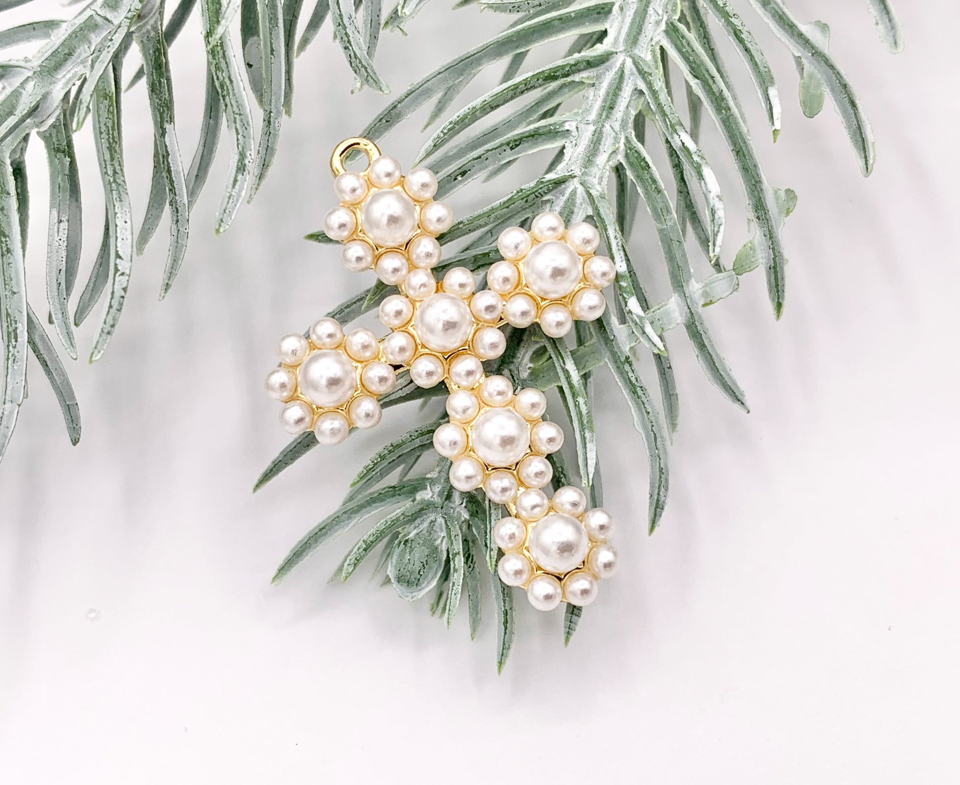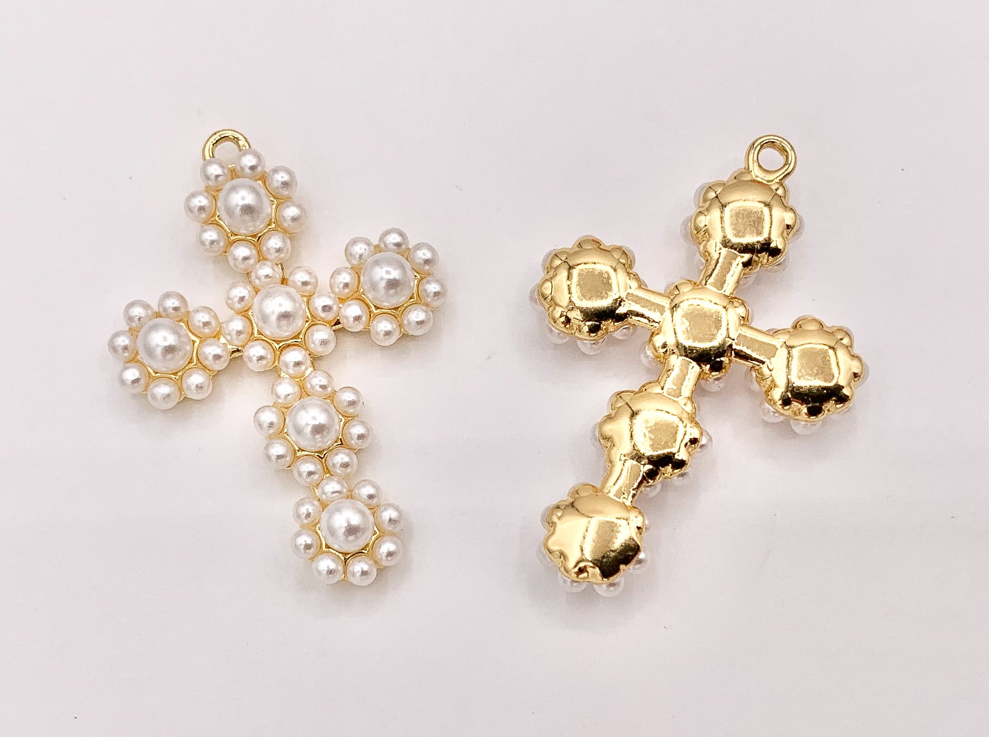 Cute Large Pearl Cross Charm in Real Gold 18K Plated Over Brass 6 PCS