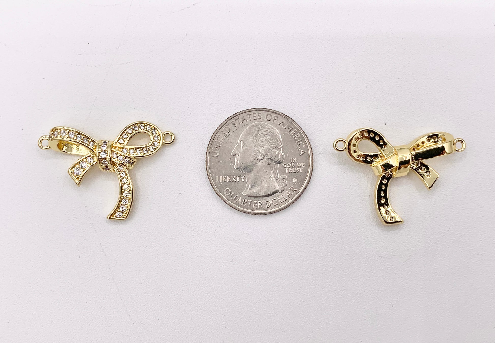 Cute Luxury Bowtie Connector in CZ Pave 18K Gold/Platinum Plated Over Copper 4 PCS