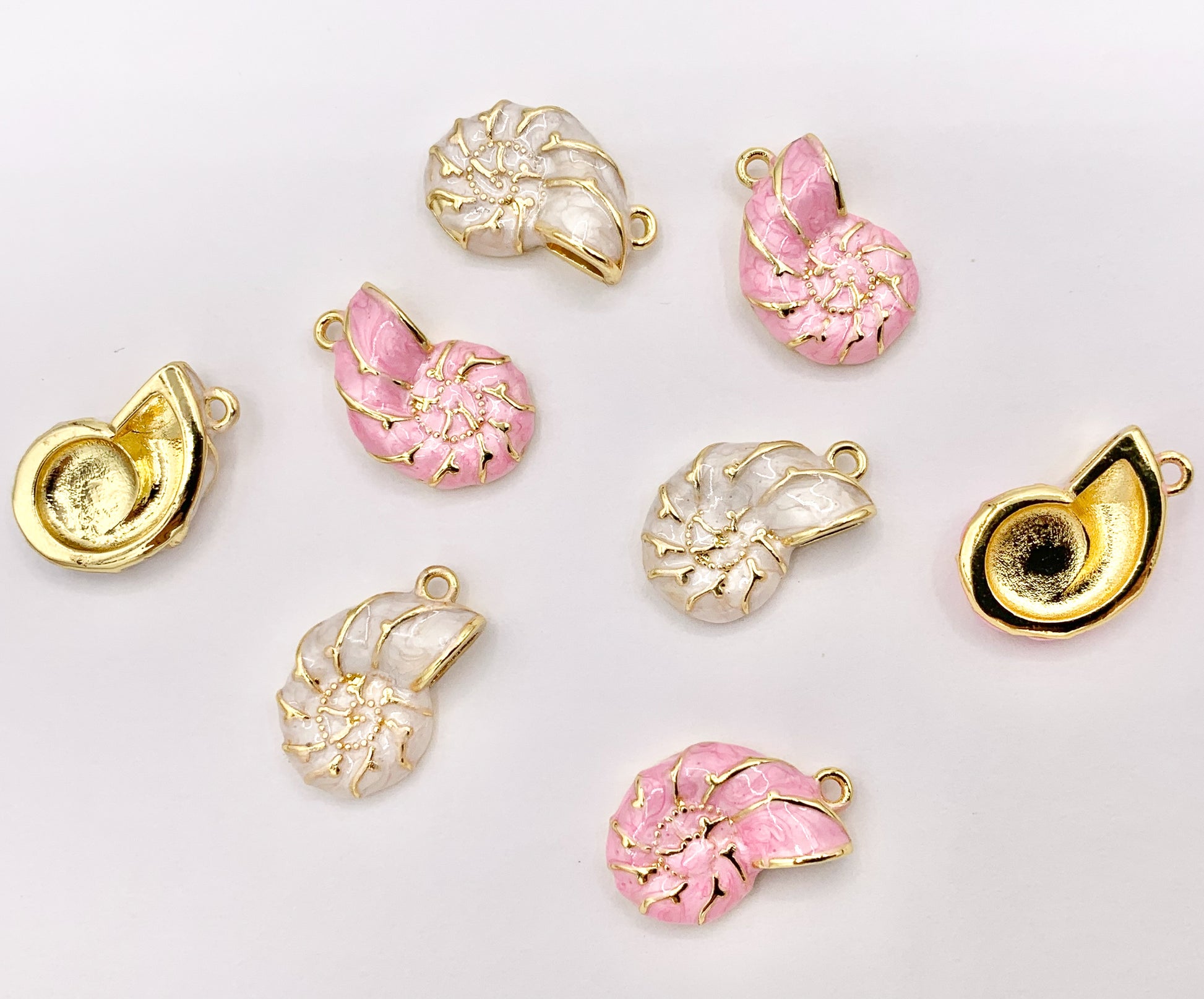 Cute Pink and White Acetate Conch Shell Charms One Sided Pendants Plated in 18K Gold Copper Base 8 PCS