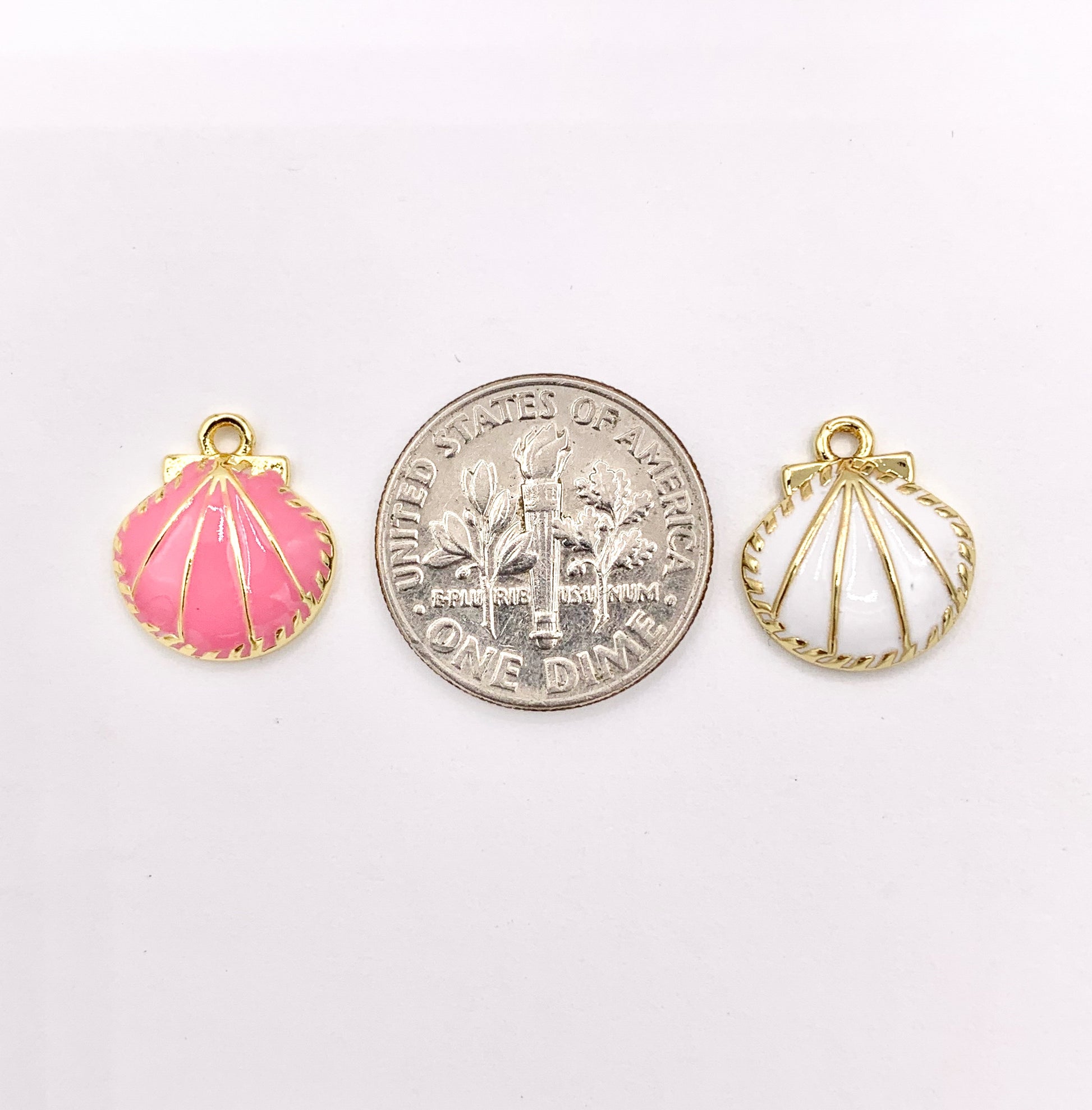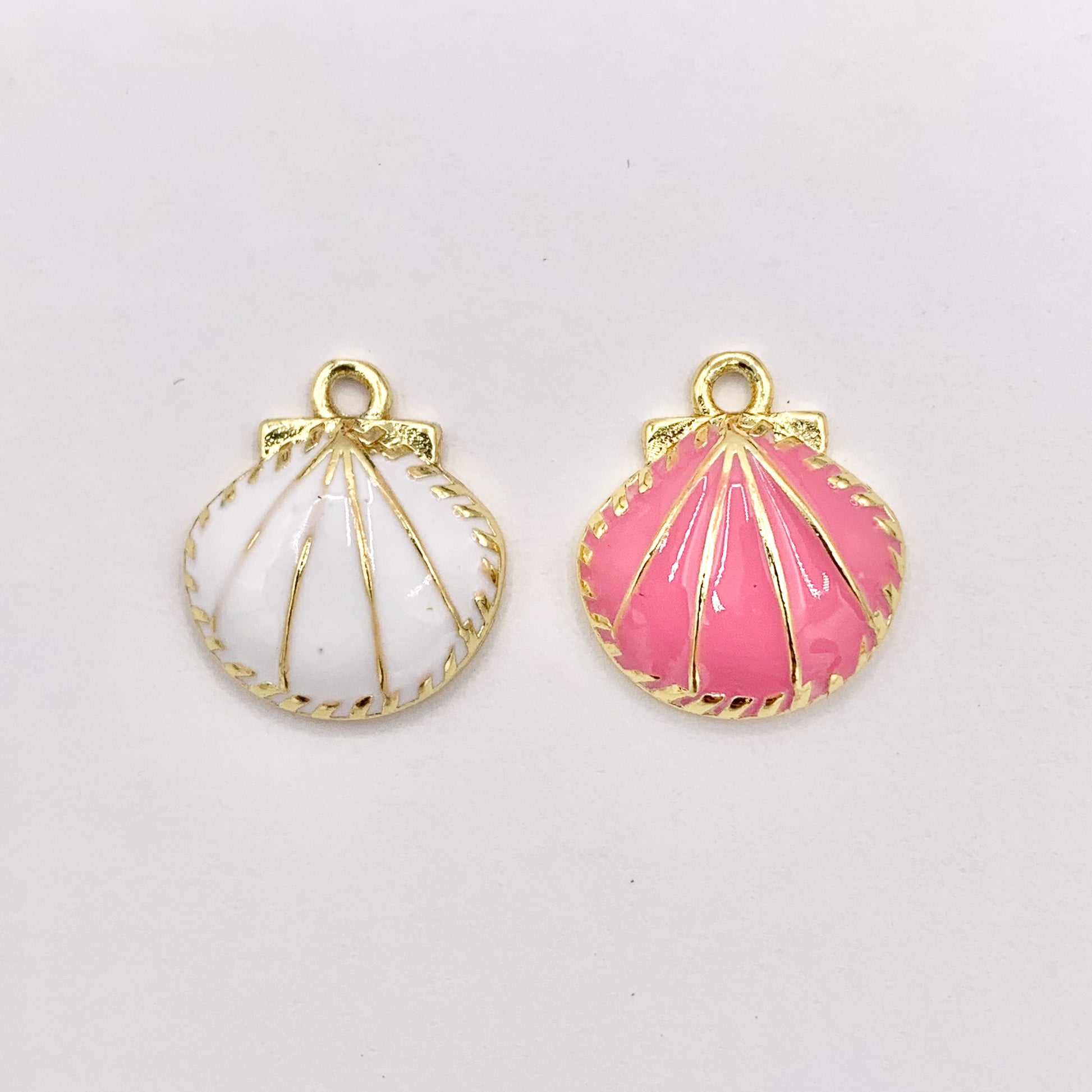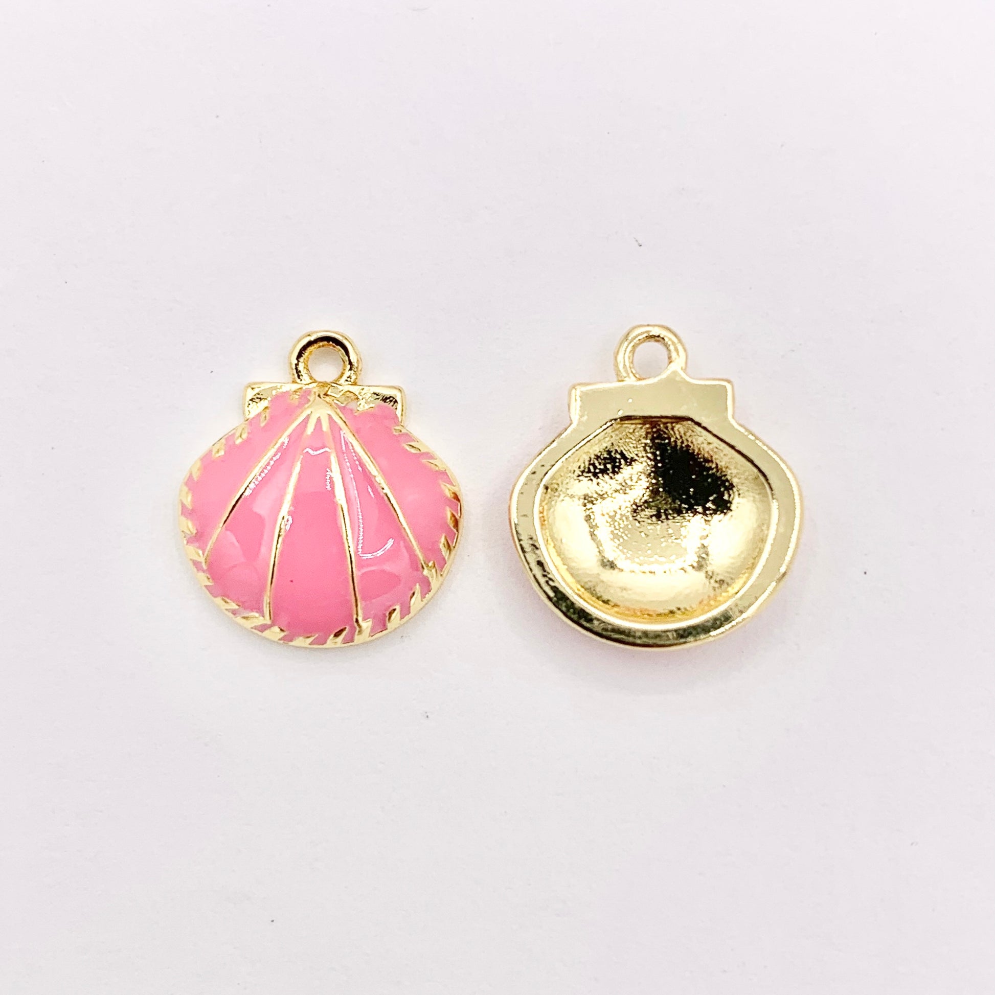 Cute Pink and White Enamel Shell Charms One Sided Pendants Plated in 18K Gold Copper Base 10 PCS