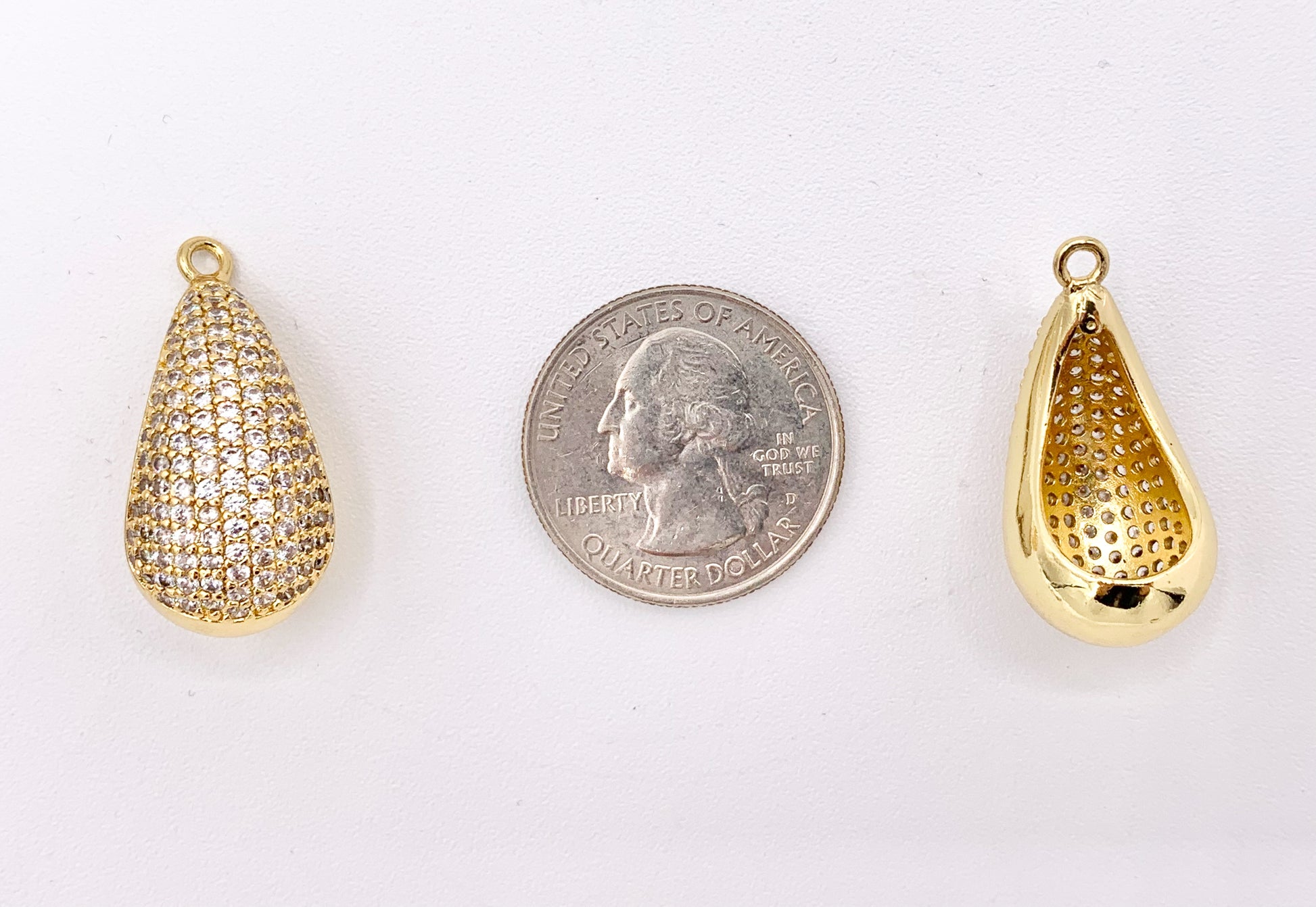 Puffy Teardrop Pendants in CZ Pave 18k Gold or Silver Plated over Copper. These pendants can be wonderful made into bracelets, dainty necklaces, earring drops and even used for crafts.