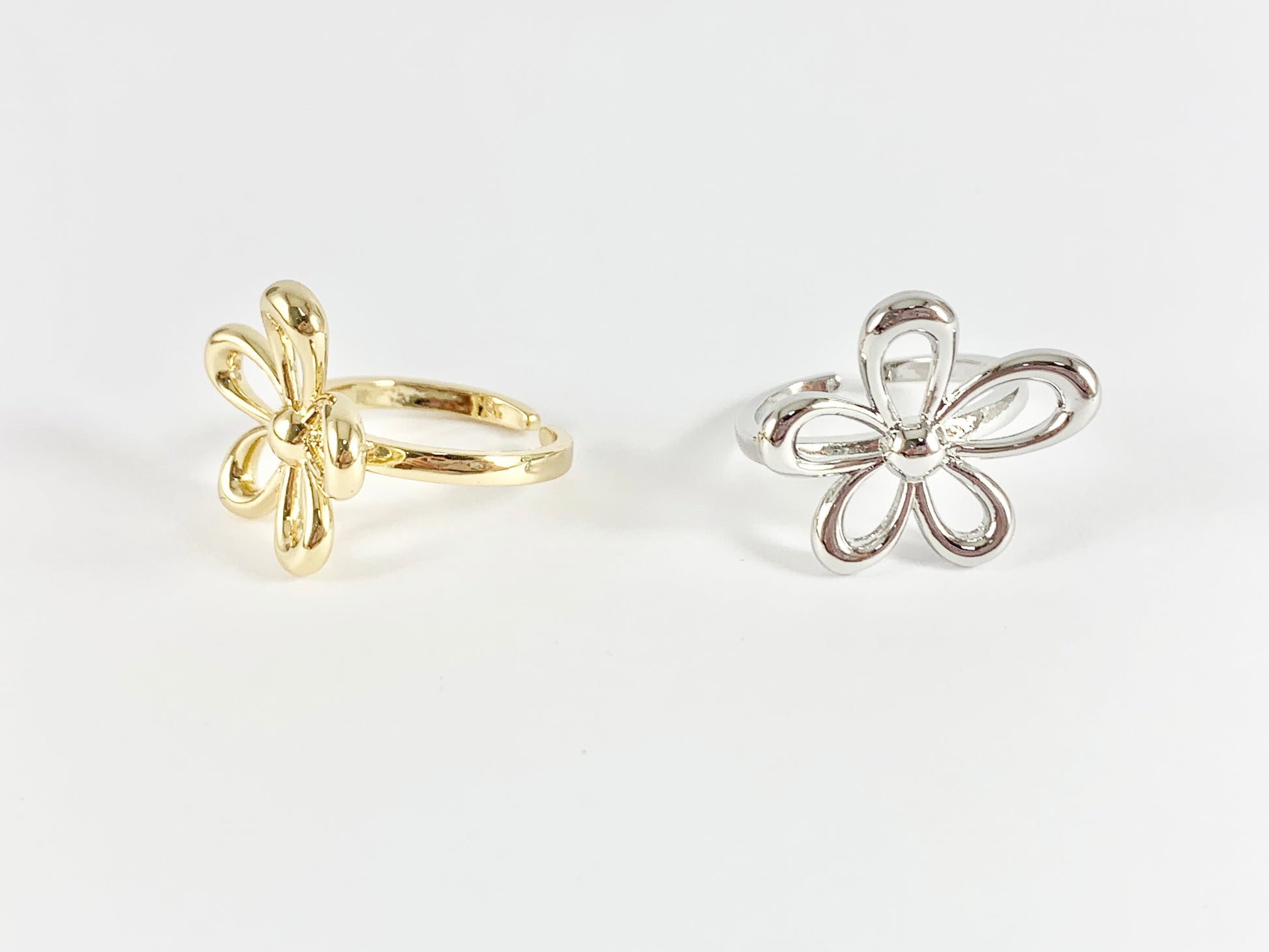 Cute Simple Flower Daisy Adjustable Rings in 18K gold or Silver plated copper