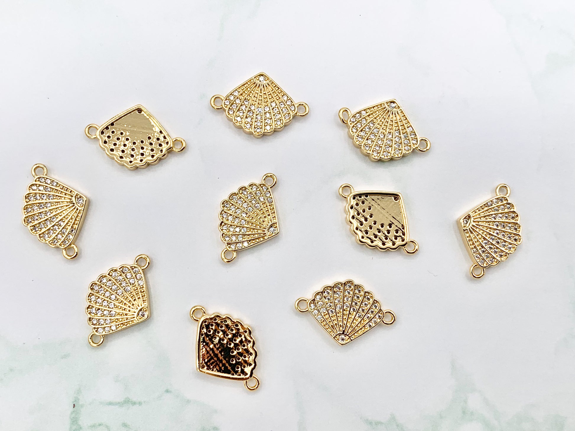 Cute Shell Connectors plated in 18K Gold Copper Base. These charms can be wonderful made into bracelets, dainty necklaces, earring drops and even used for crafts.