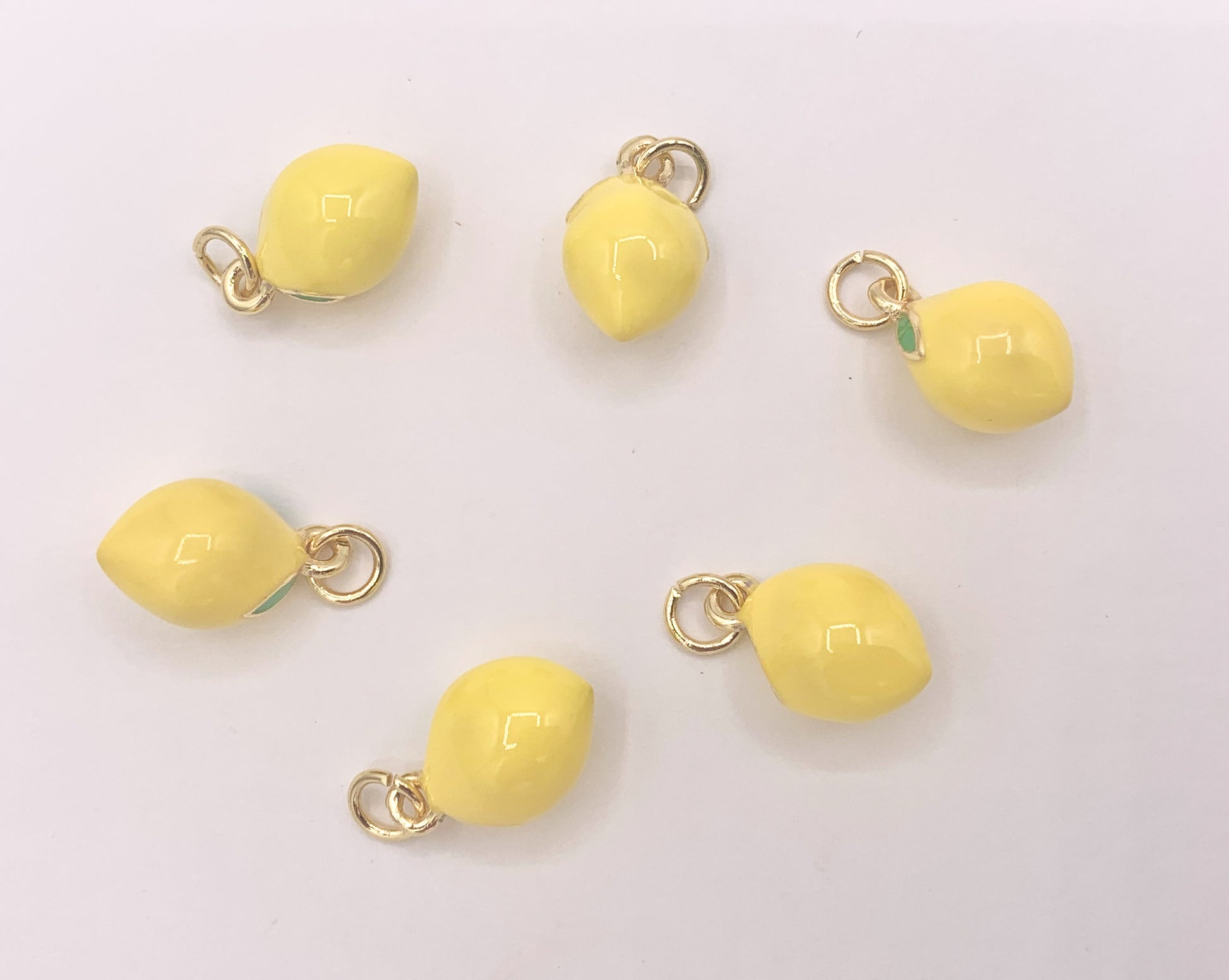 These high quality enamel lemon charms are real gold 18K plated with a copper base. These charms can be wonderful made into bracelets, dainty necklaces, earring drops and even used for crafts.