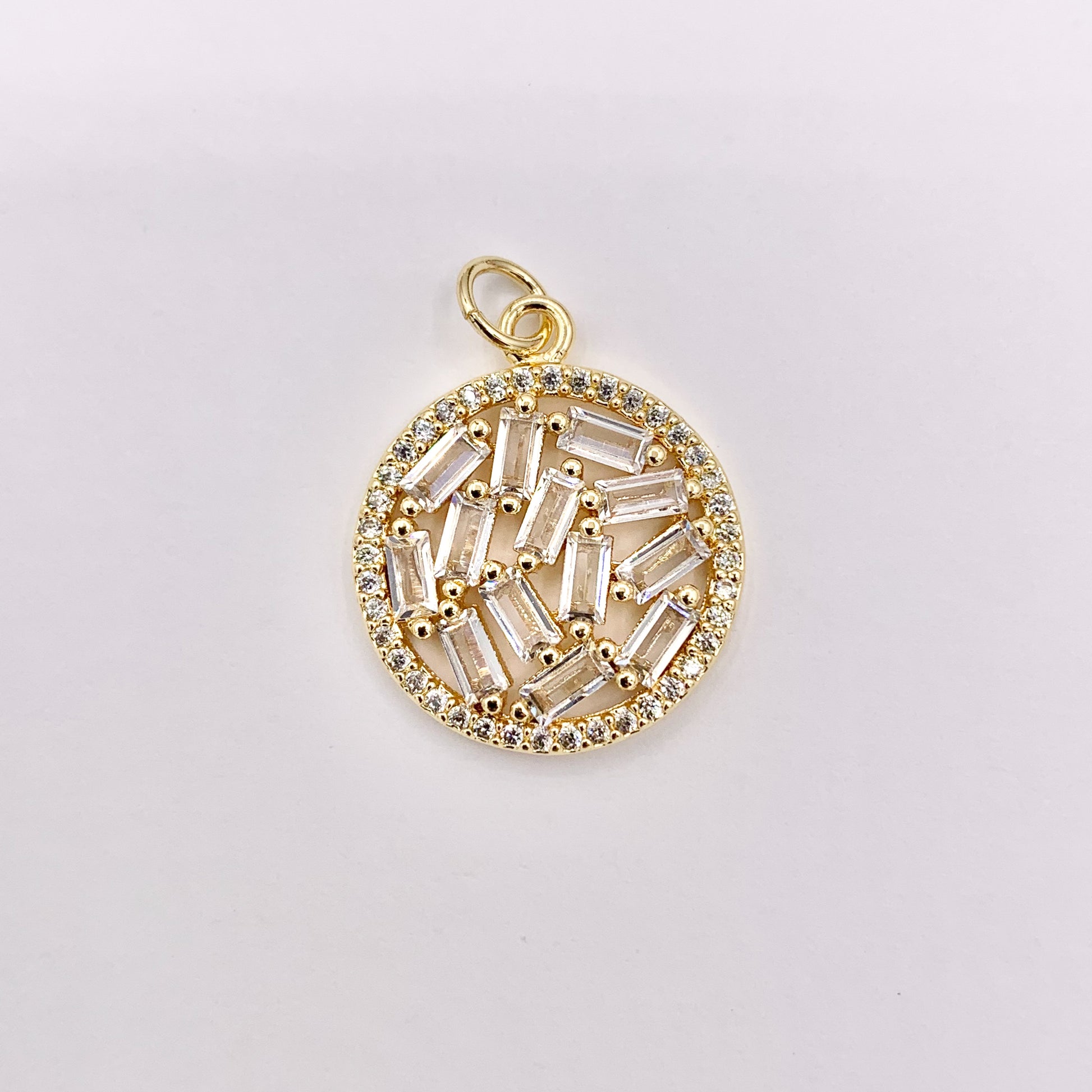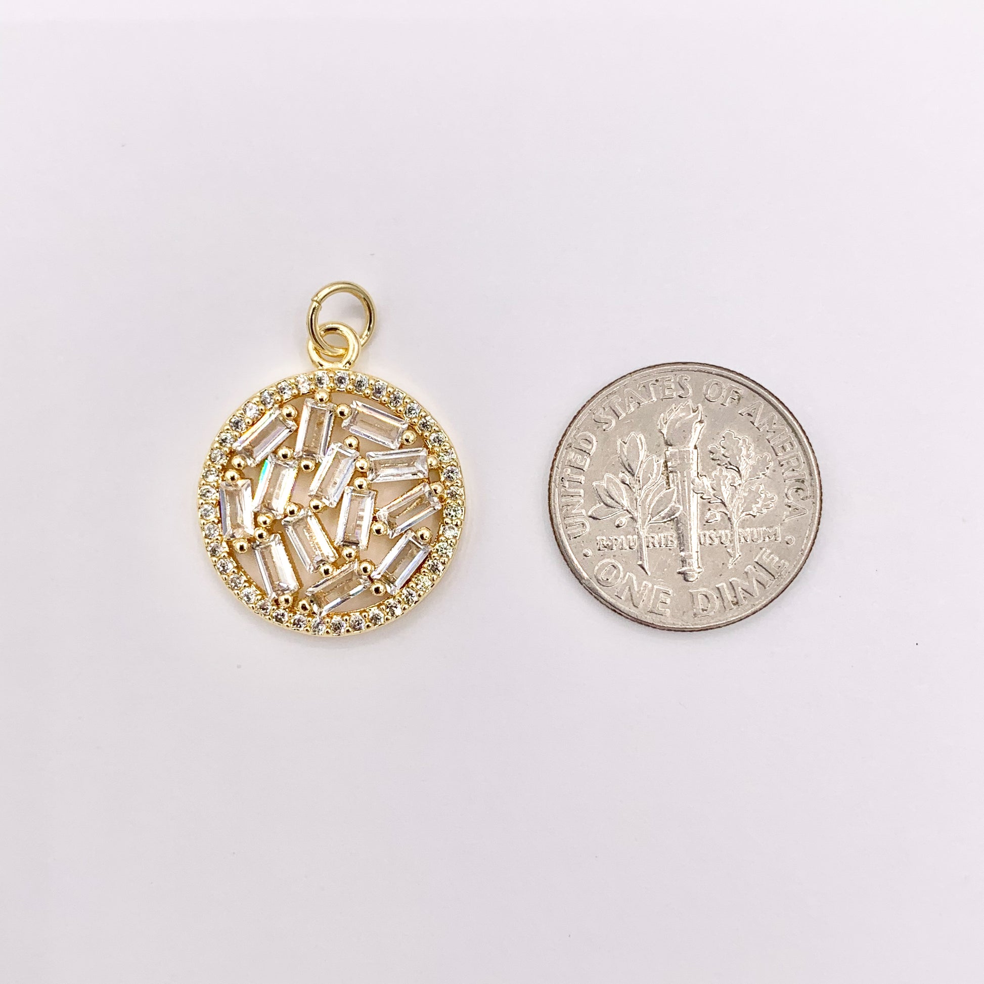 Coin Charms with CZ Pave in 18K Gold plated Copper. These can be wonderful made into necklaces, earring drops and even used for crafts.