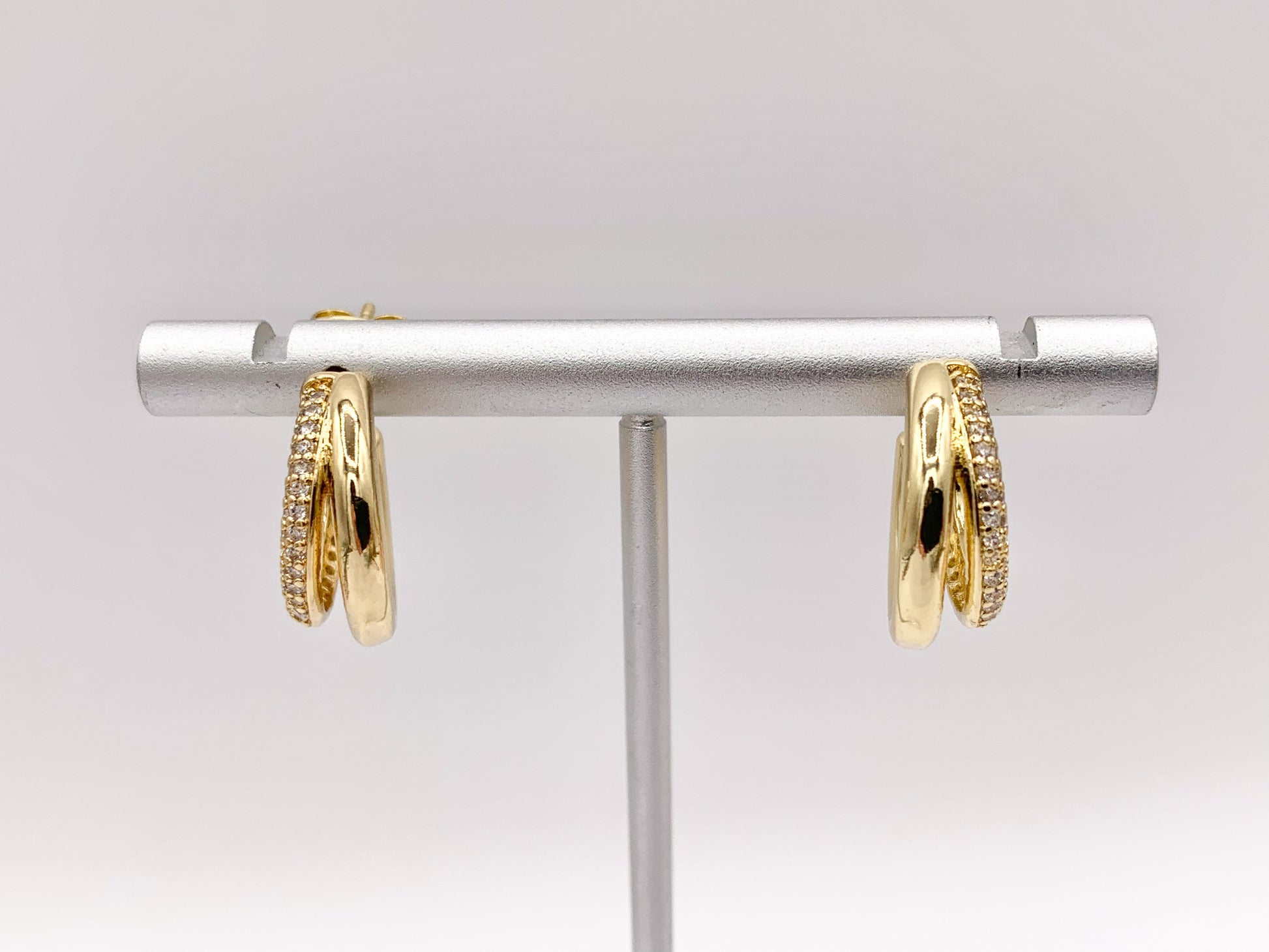 These pretty little hoops are real gold 18k plated with a copper base. They are unique and beautiful. Definitely would catch everyone's eyes!