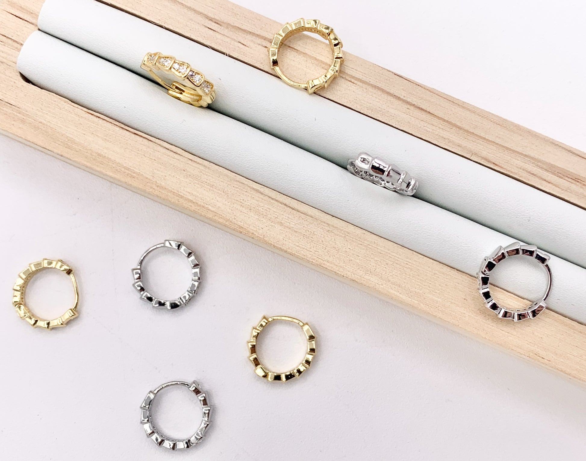 Dainty Cubic Zirconia 14mm Earring Huggies in 18K Gold or Silver Plated Copper 5 pairs