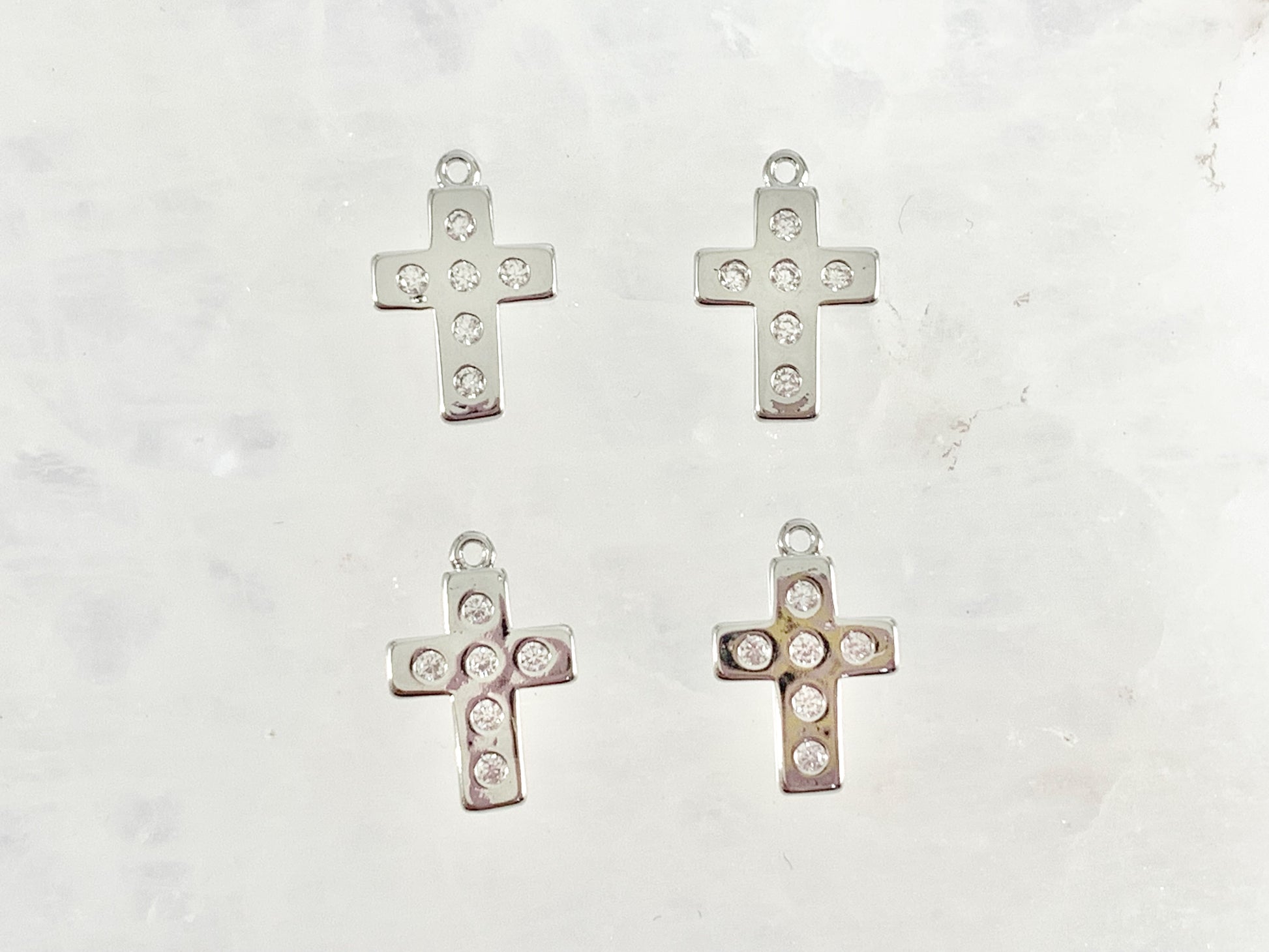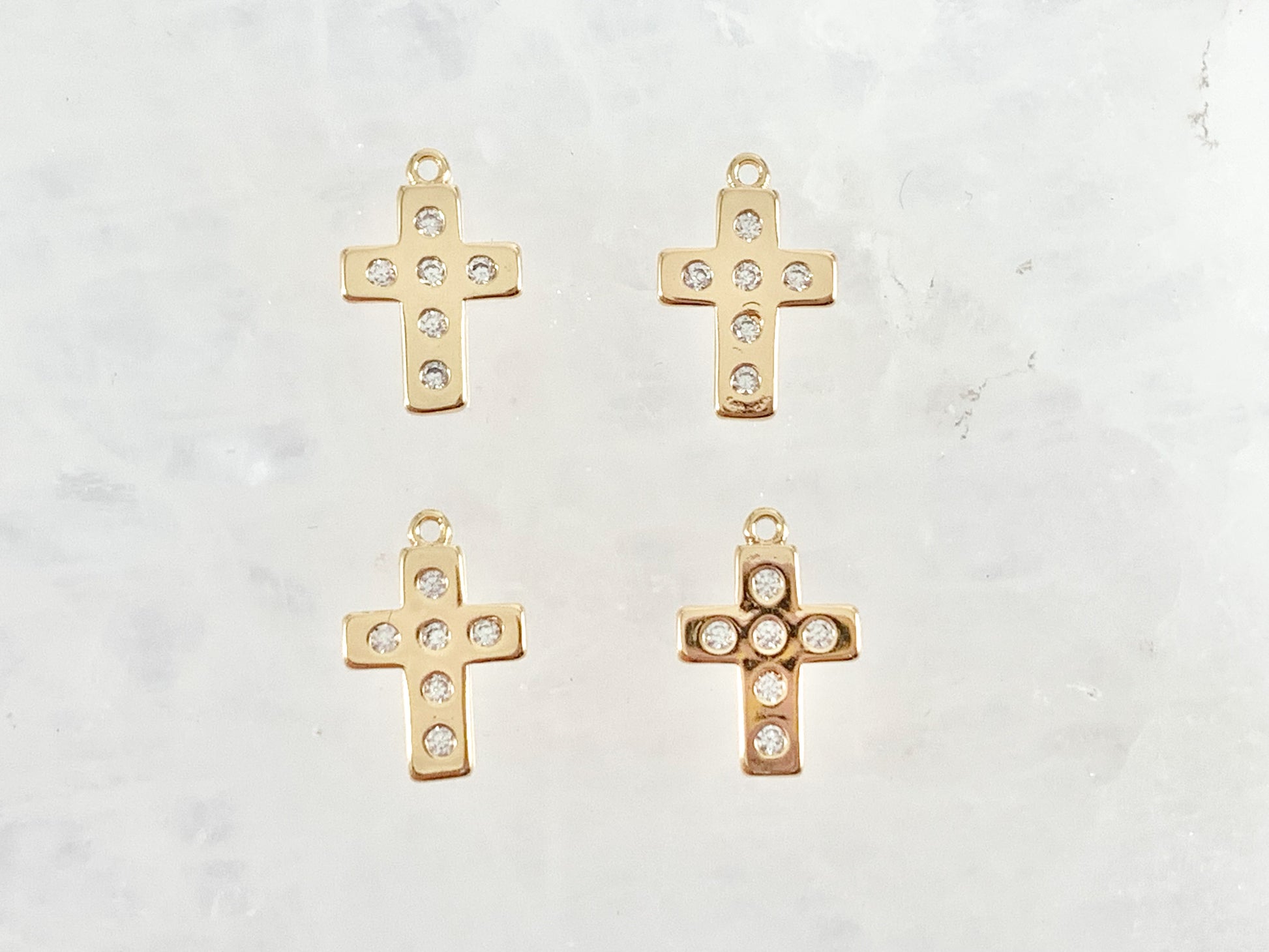 Dainty Cute Cross Charms in CZ Pave 18K Gold/Silver Plated Copper