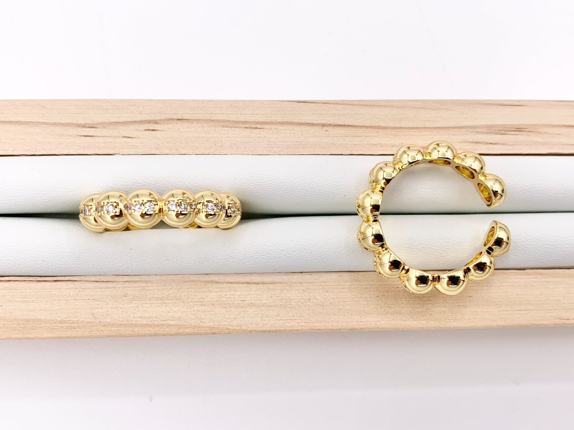 Dainty Cute Simple Stackable CZ Pave Beaded Minimalist 18K Gold Plated Ring 6 PCS