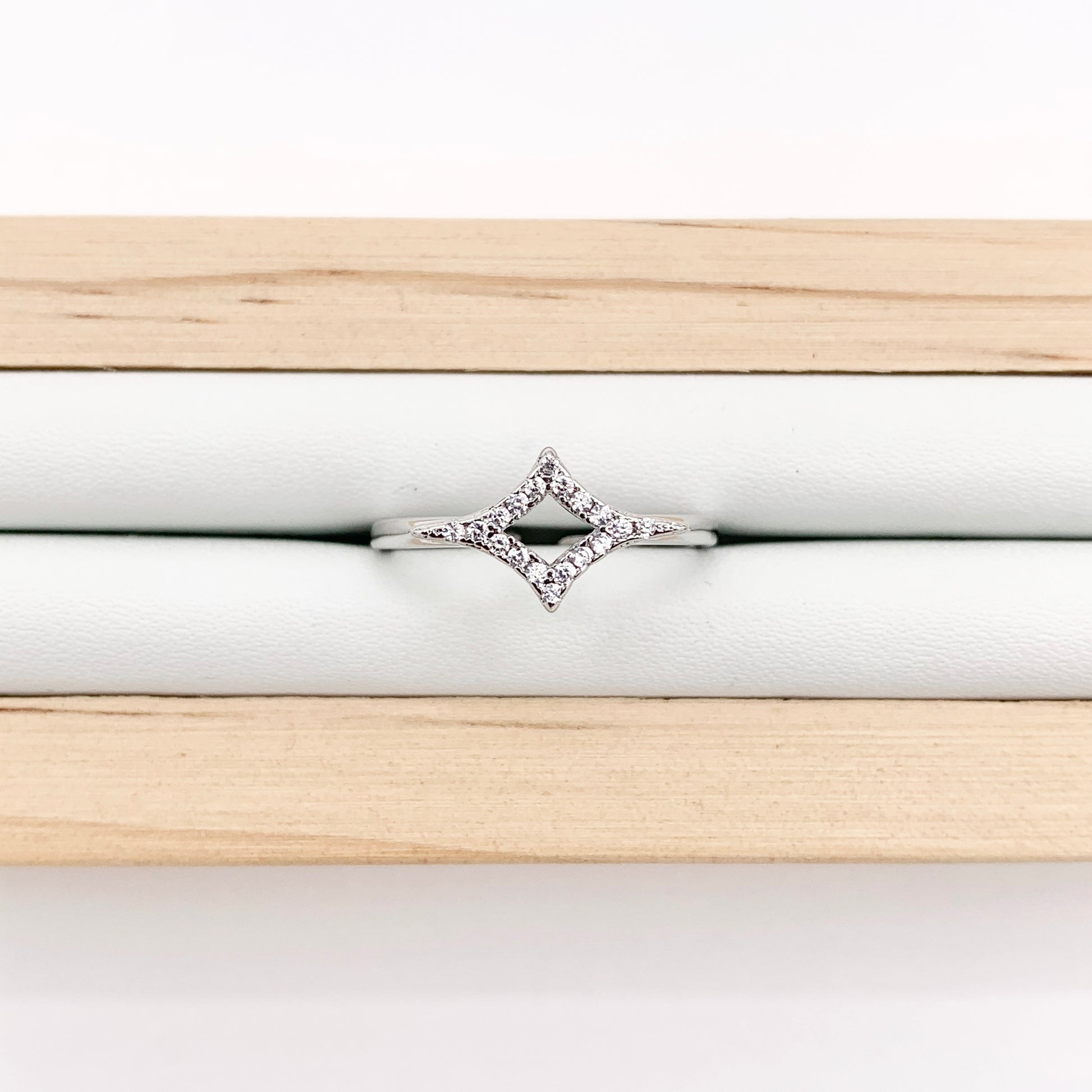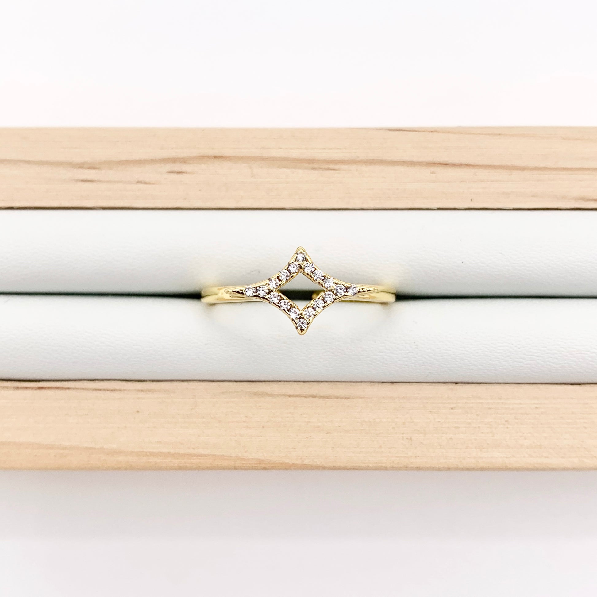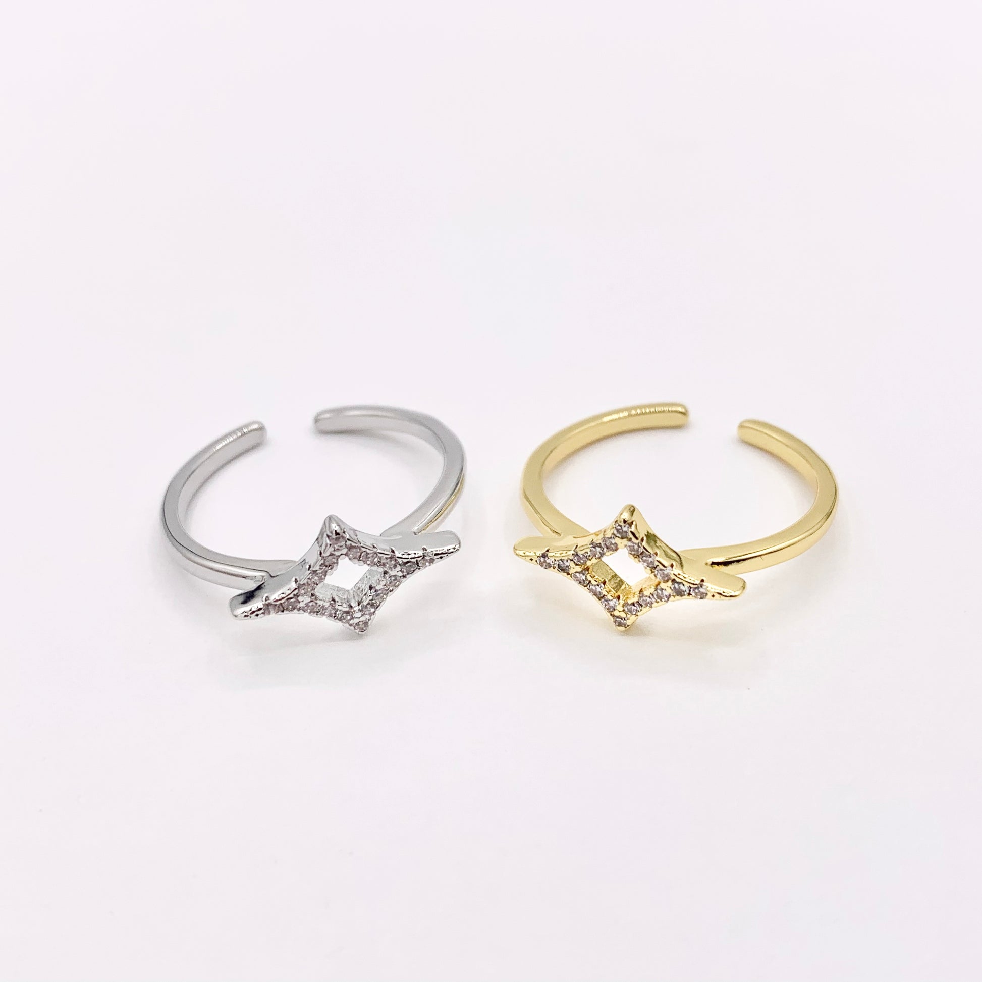Dainty Diamond Shape Stackable Ring Gold/Silver 18K Plated Copper CZ Pave Adjustable Ring 4 PCS