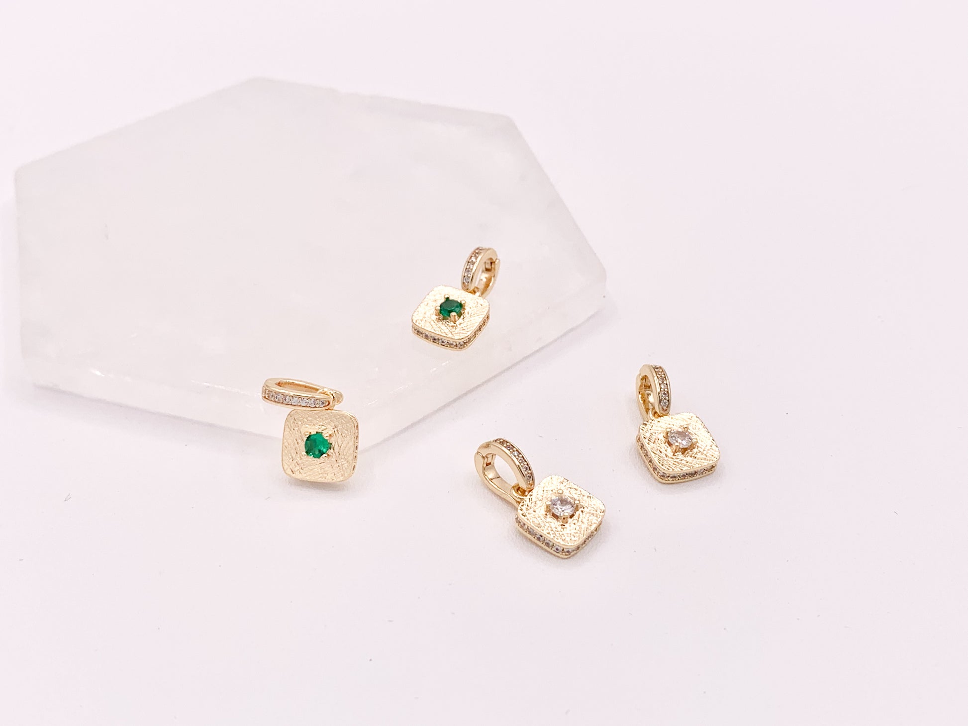 Dainty Emerald Rhinestone CZ Square Pendants with a Open Bail in 18K Gold plated Copper. The bails can be opened up.