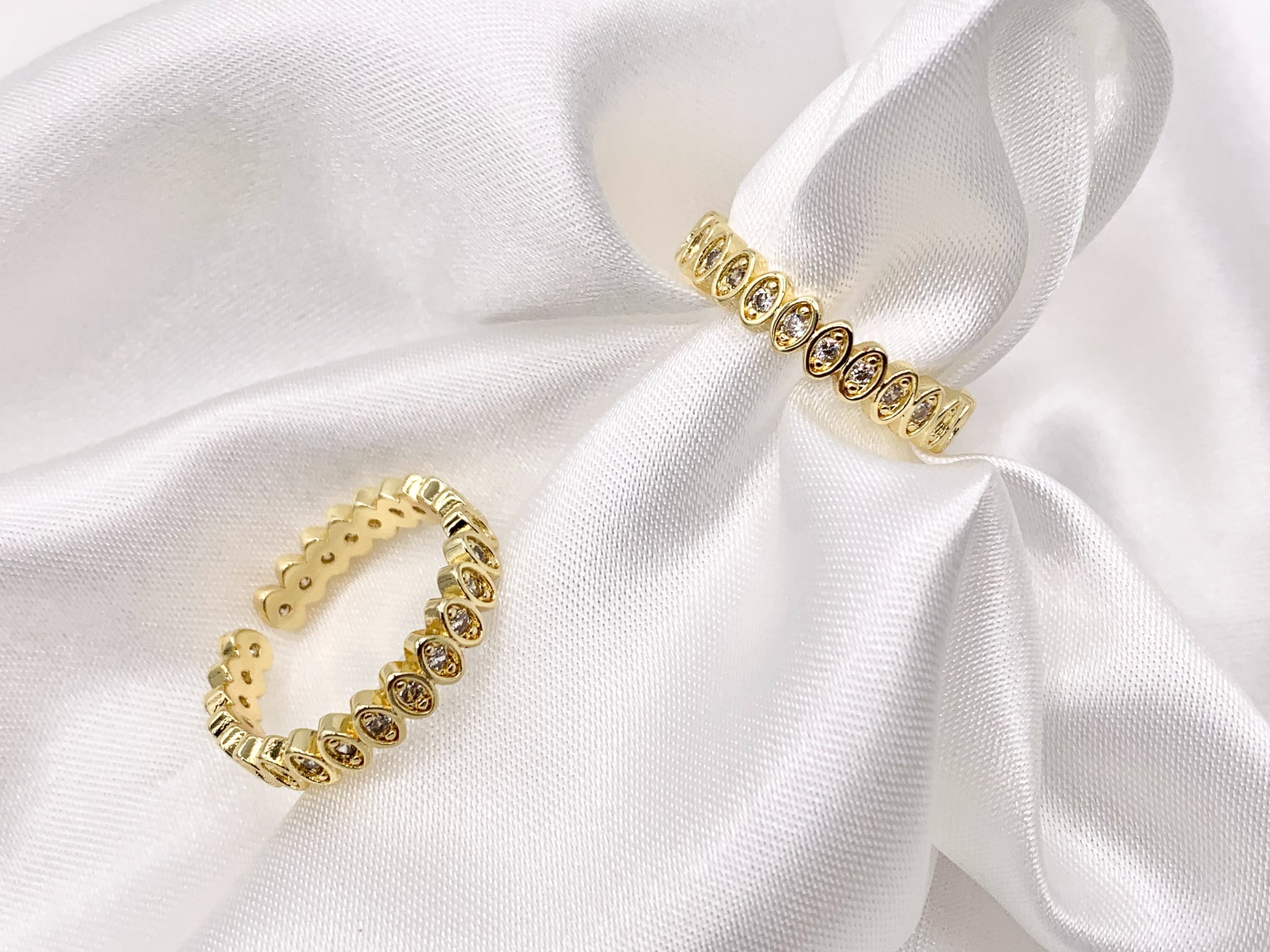 Dainty Gold Eye Oval Link Shape Stackable Rings Gold 18K Plated Copper CZ Pave Adjustable Ring 5 pcs