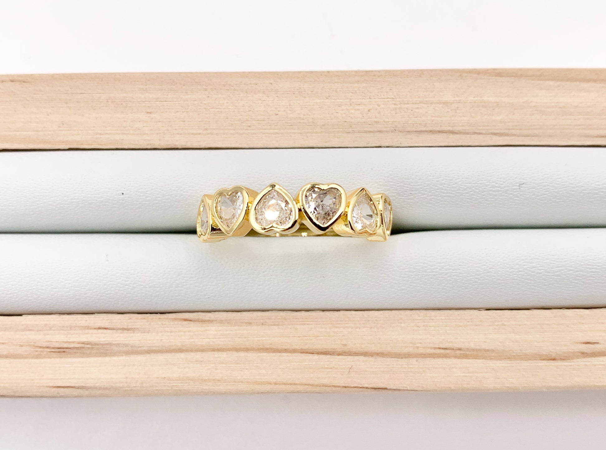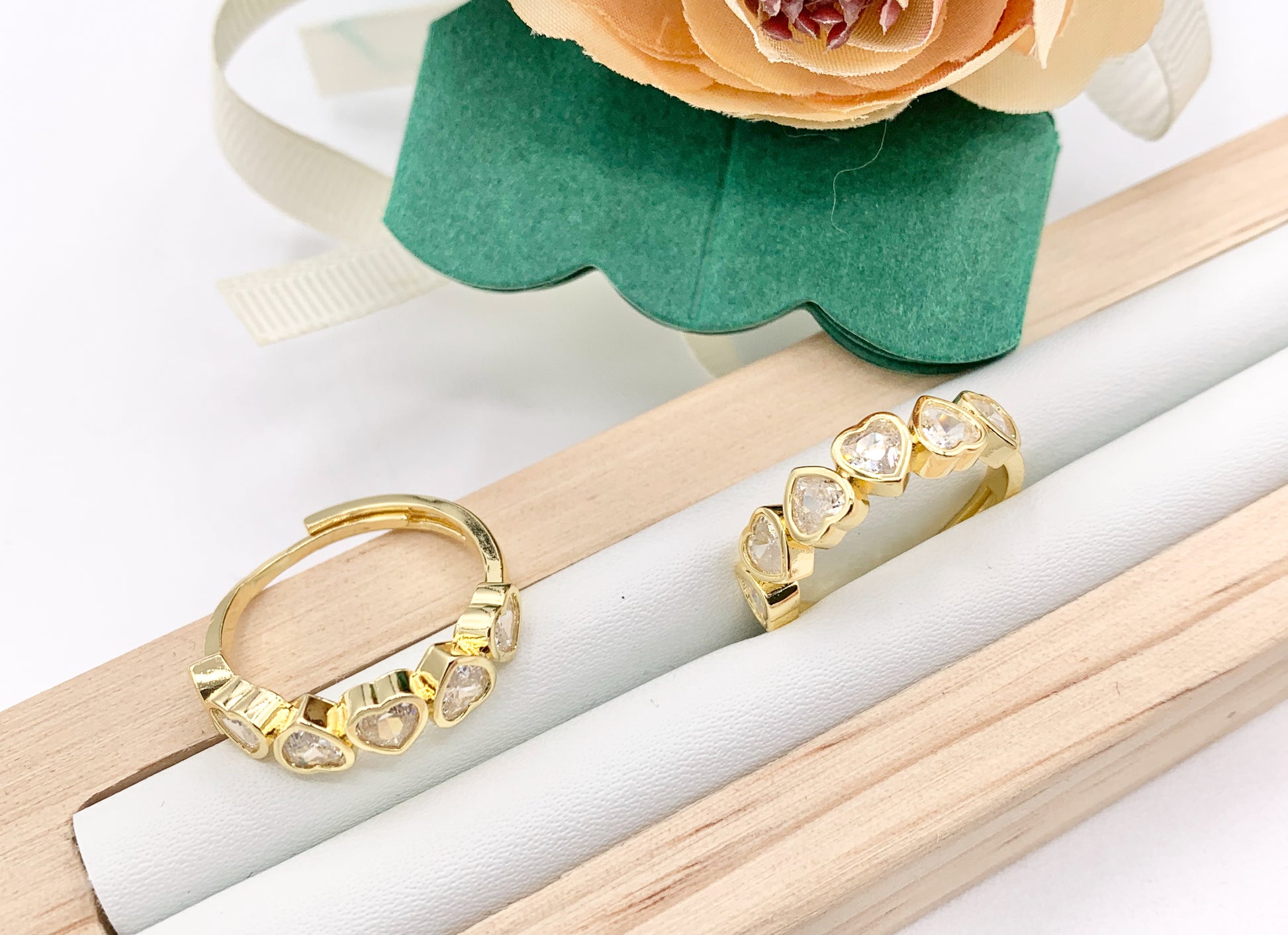 Dainty Hearts Rhinestone Rings in Real 18K Gold Plated CZ Pave Adjustable Statement Ring