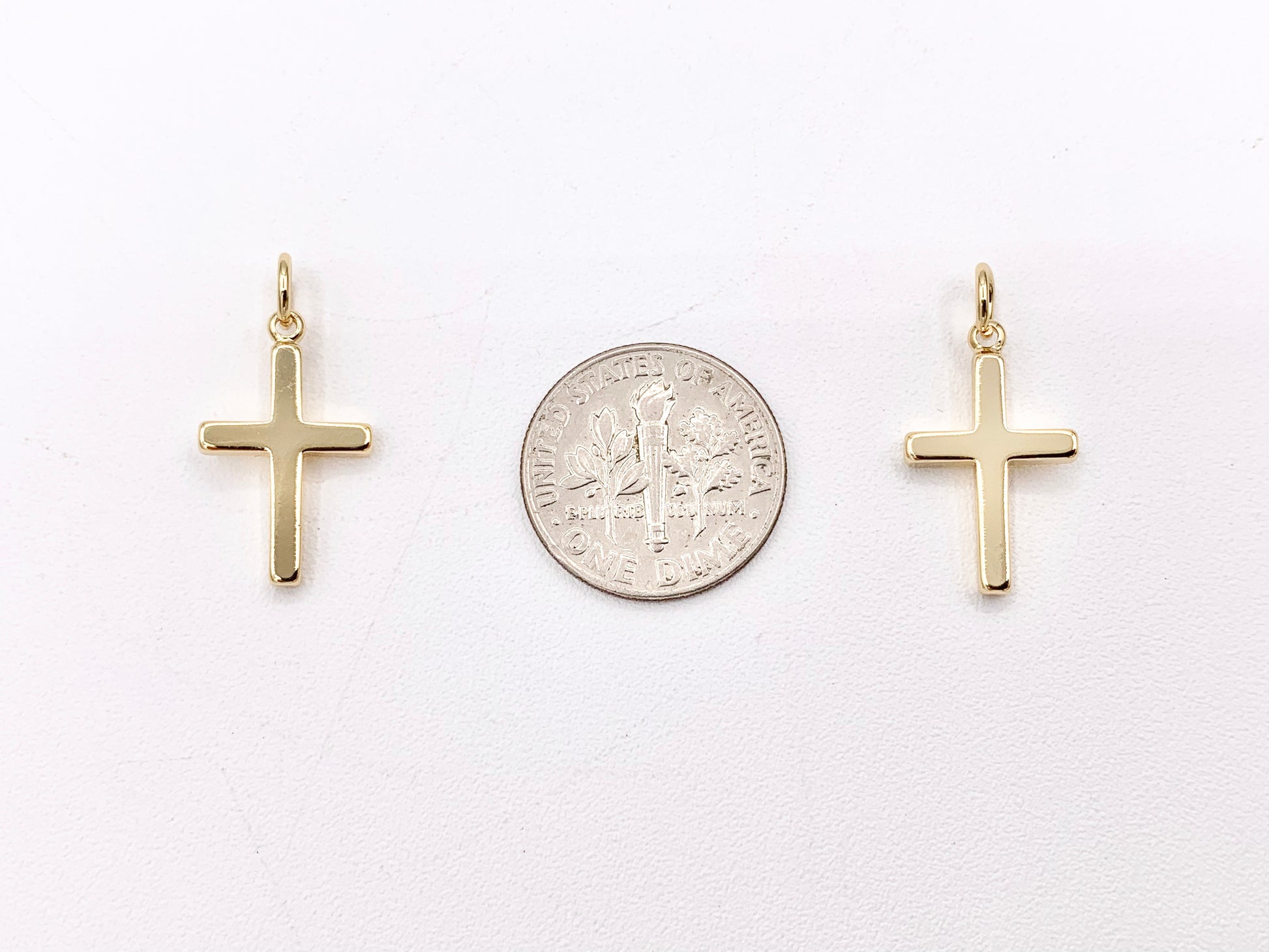 Gold Plated Cross Charms Pendants in 18K gold plated Copper. These charms can be wonderful made into bracelets, dainty necklaces, earring drops and even used for crafts.