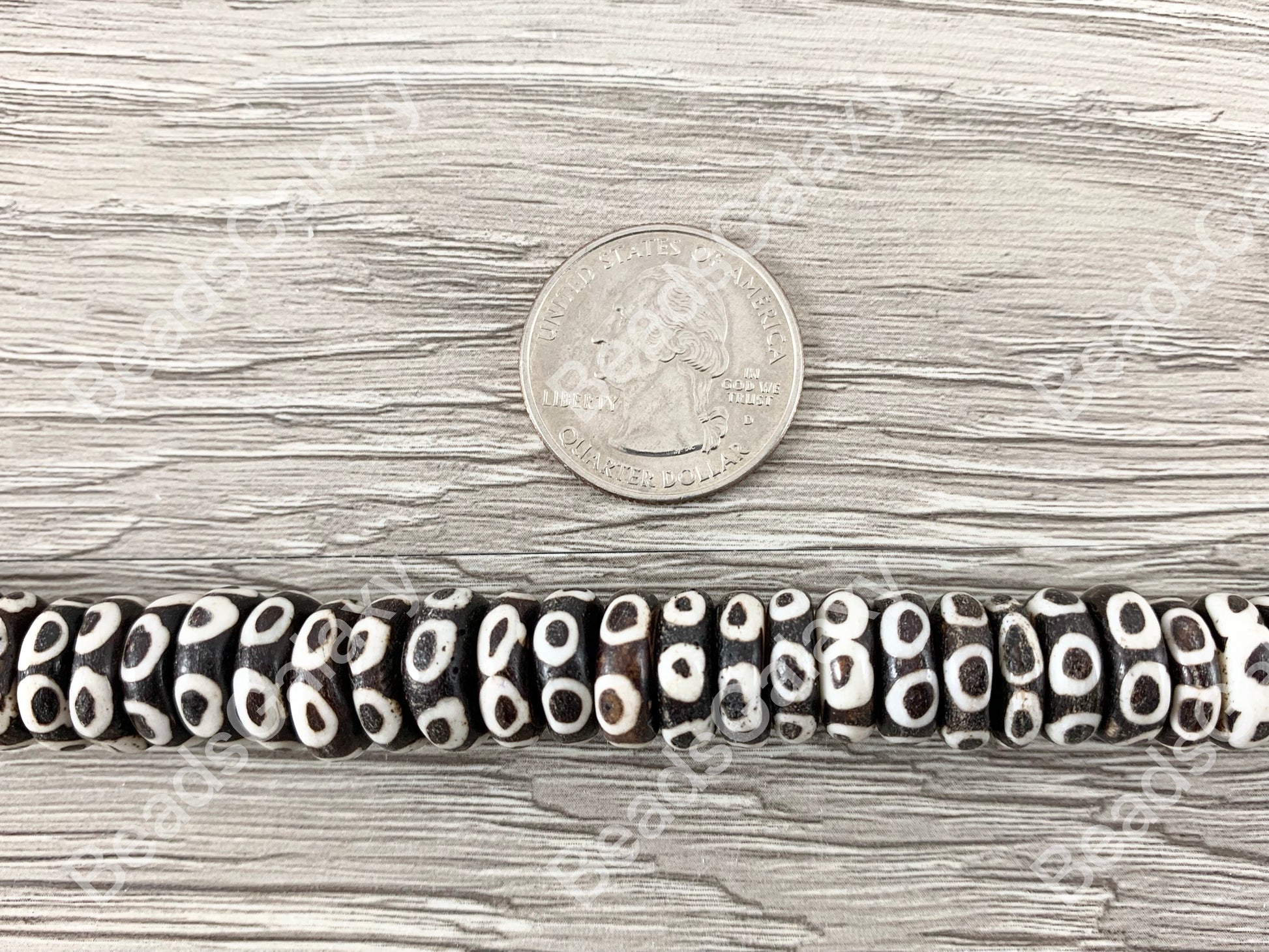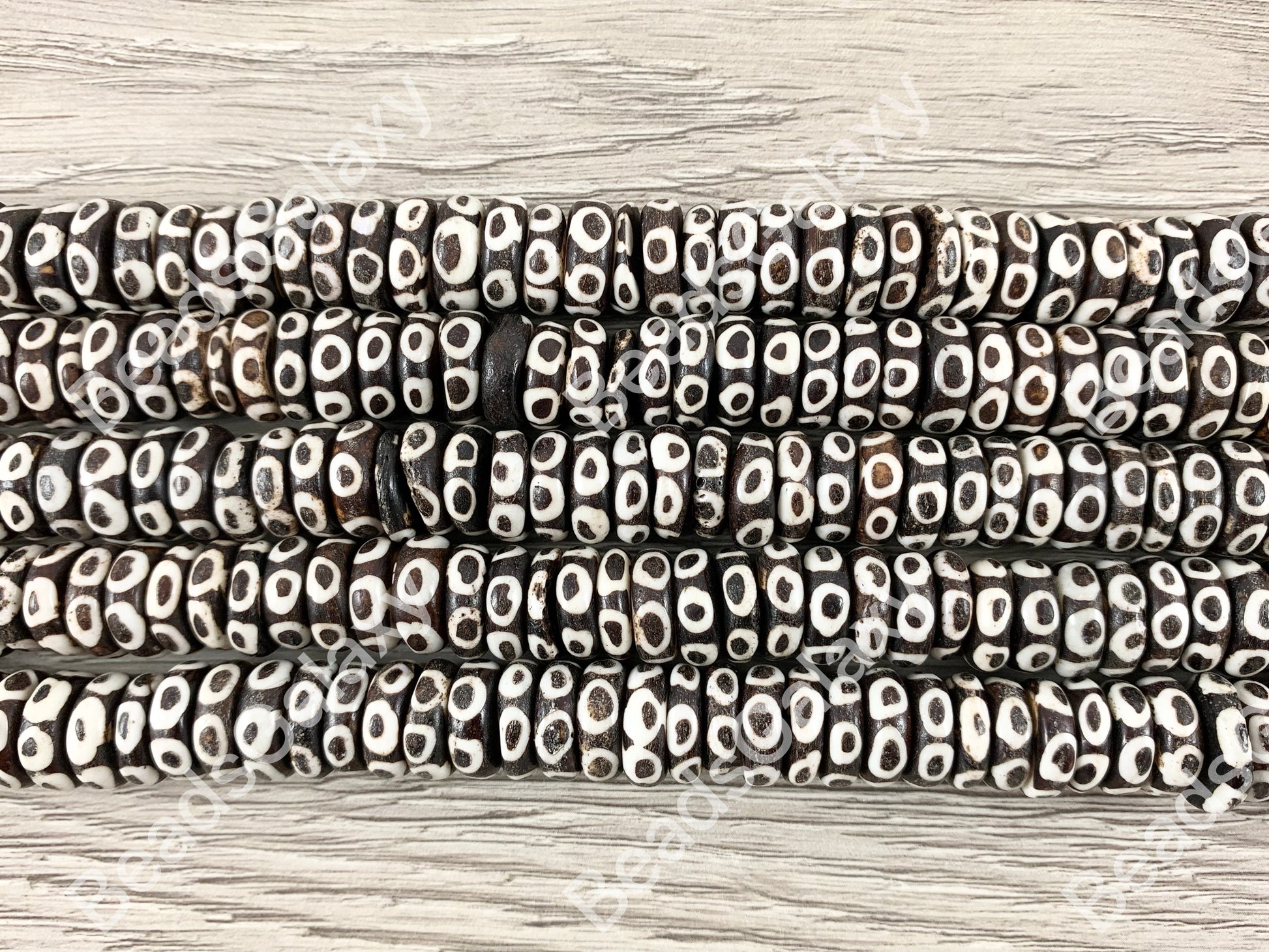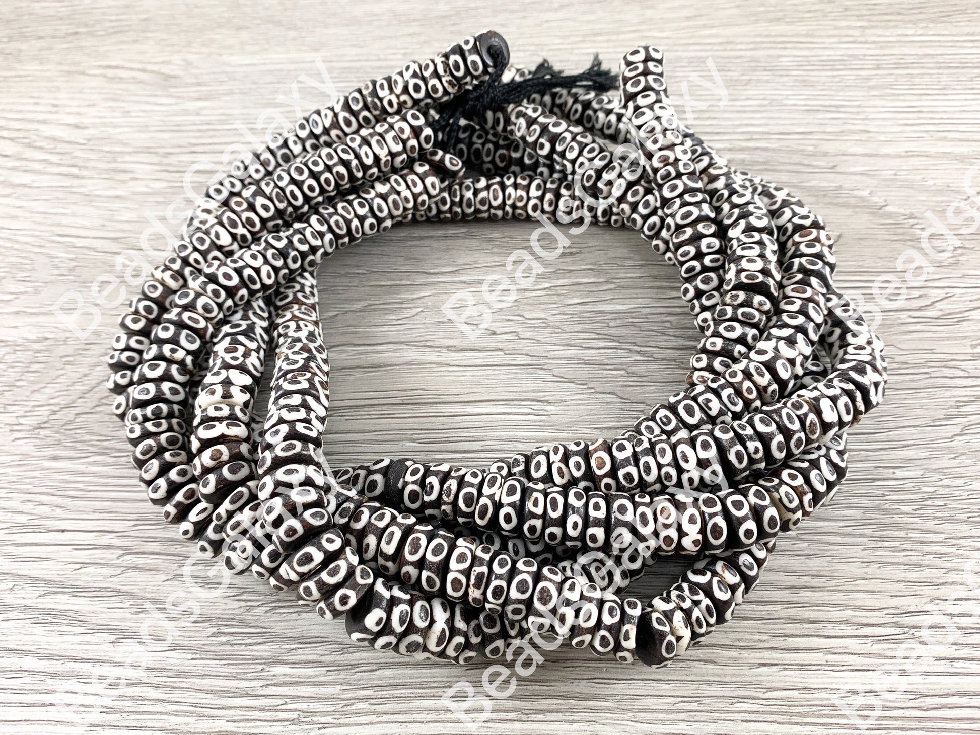 Dark Brown Polka Dot Rondelle Bone Beads From Africa