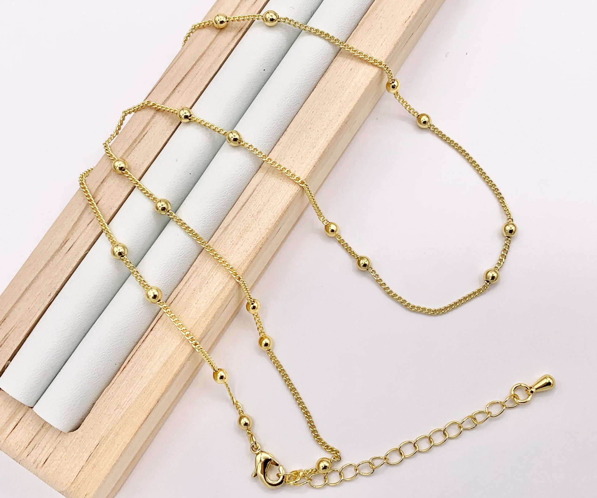 Delicate 18K Gold Plated Copper Tiny Round 3mm Gold Beads Beaded Finished Necklace 17.5" + 2" Extension Link 10 PCS