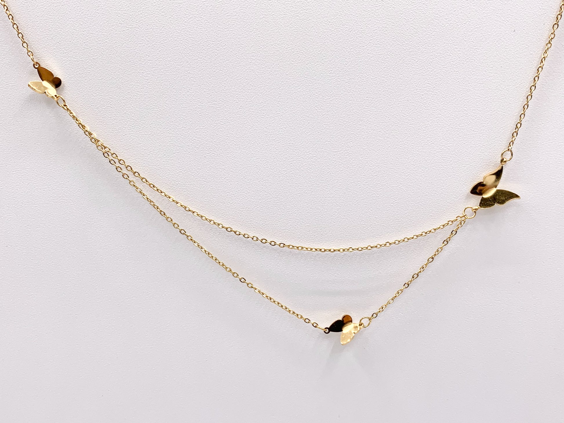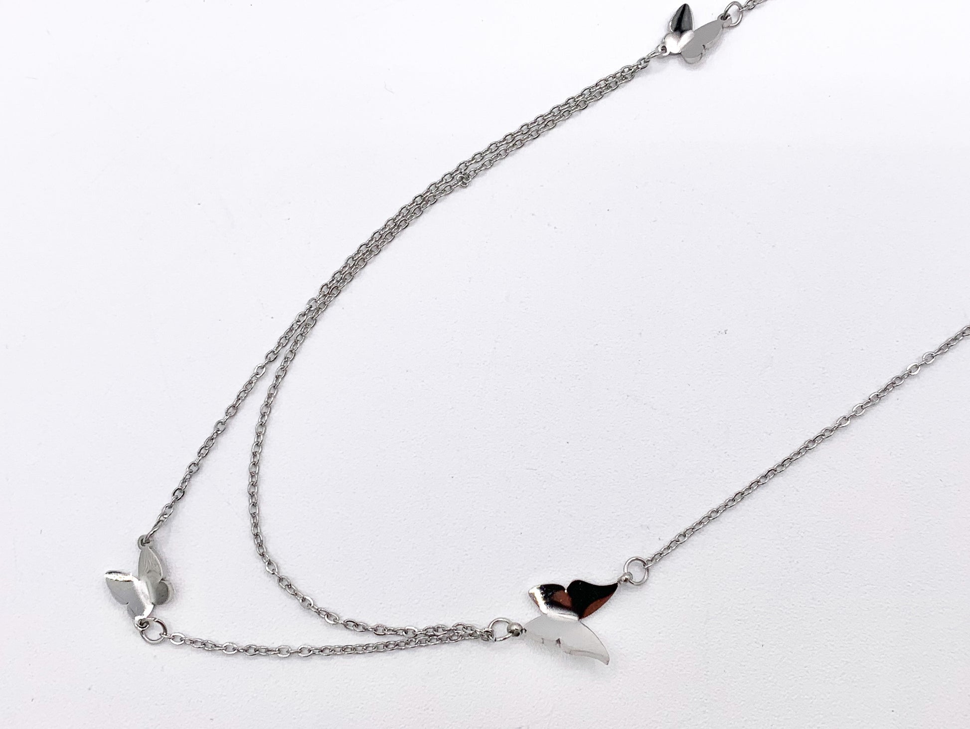 Delicate 2 Layers Butterfly Necklace Gold/Silver Plated Stainless Steel Dainty Flexible Minimalist Finished Necklace 16" with Extension Link