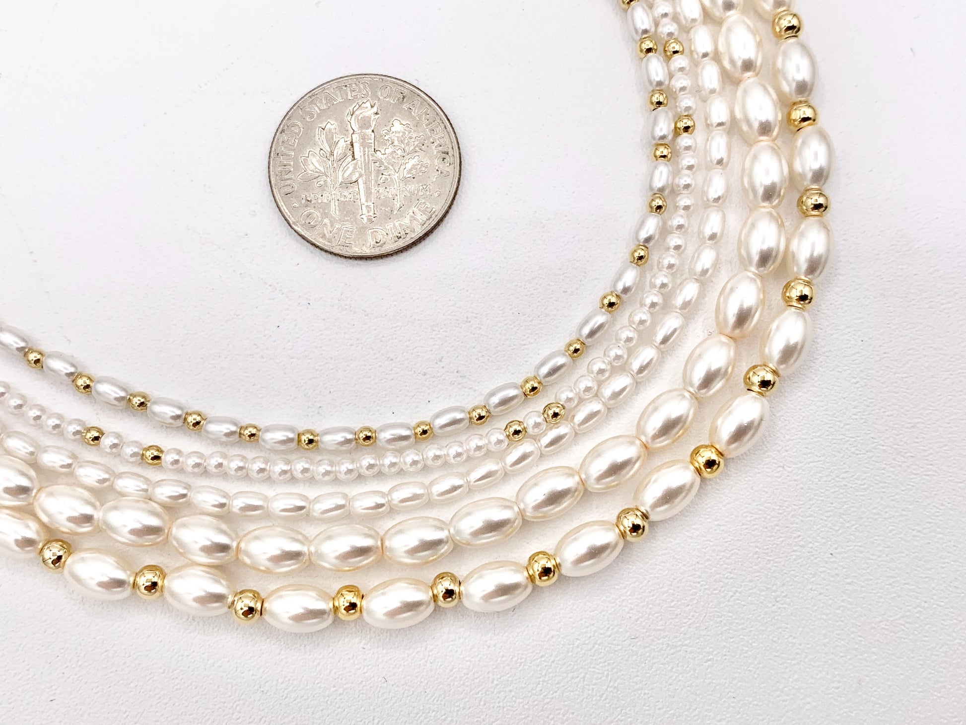#5 - Rice Pearl Around 4x6mm, Gold Spacer Around 3mm