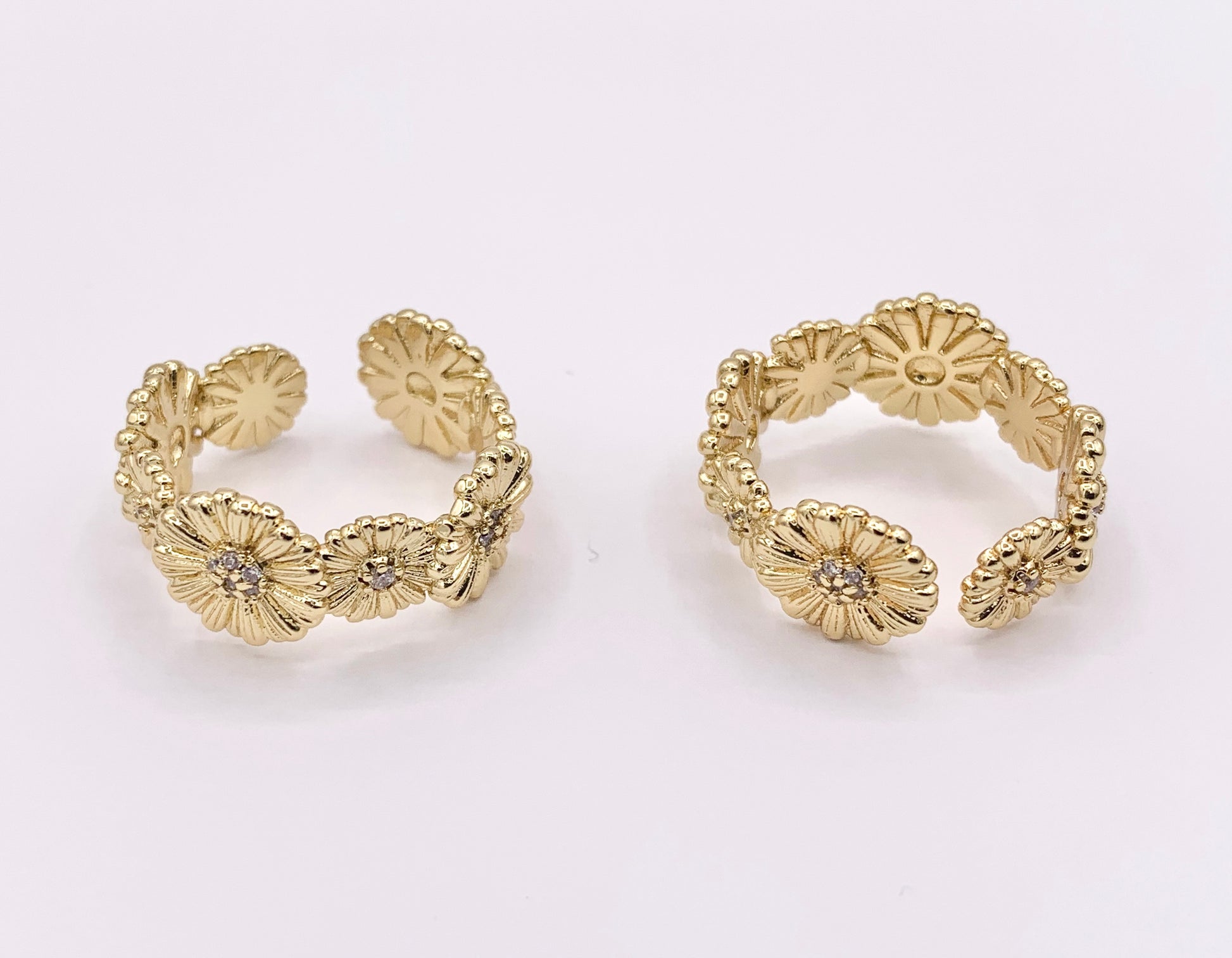 Delicate Daisy Cubic Zirconia Rhinestone Flower Ring Adjustable Rings in 18K Gold Plated Copper