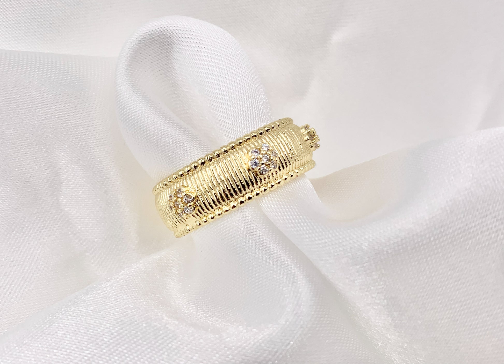 Delicate Flower Cubic Zirconia Rhinestone Flower Ring Adjustable Band Rings in 18K Gold Plated Copper