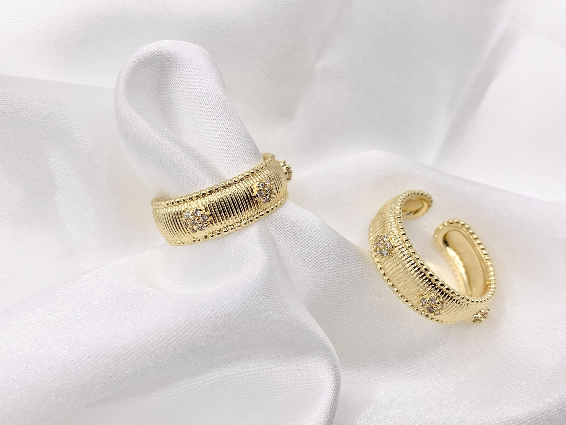 Material: Micro pave CZ, Real gold 18K plated with copper base