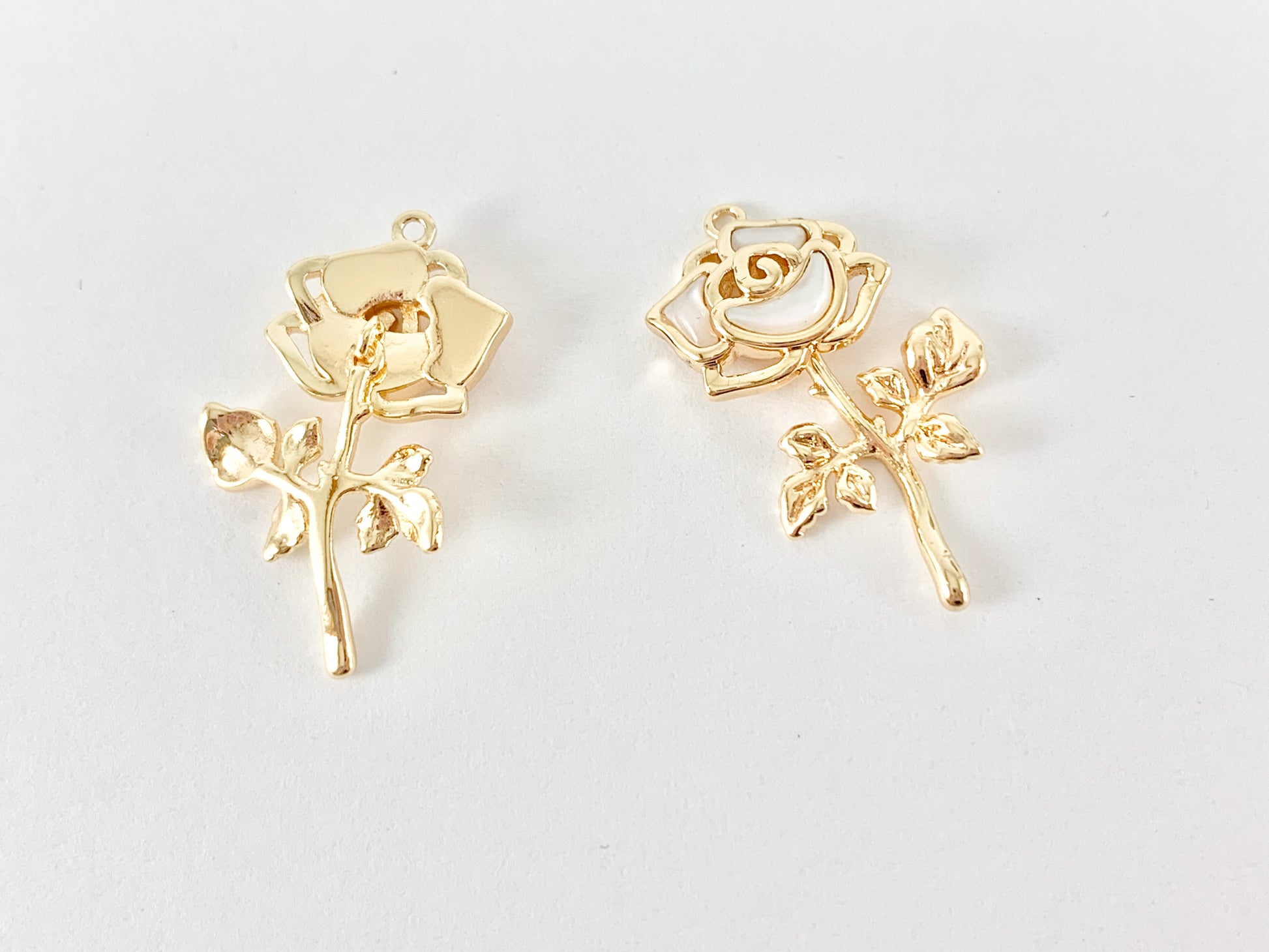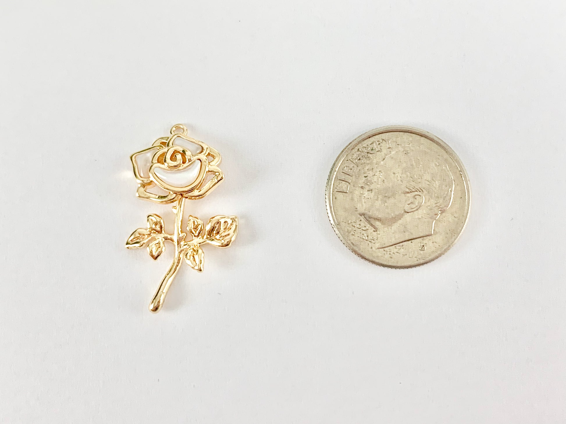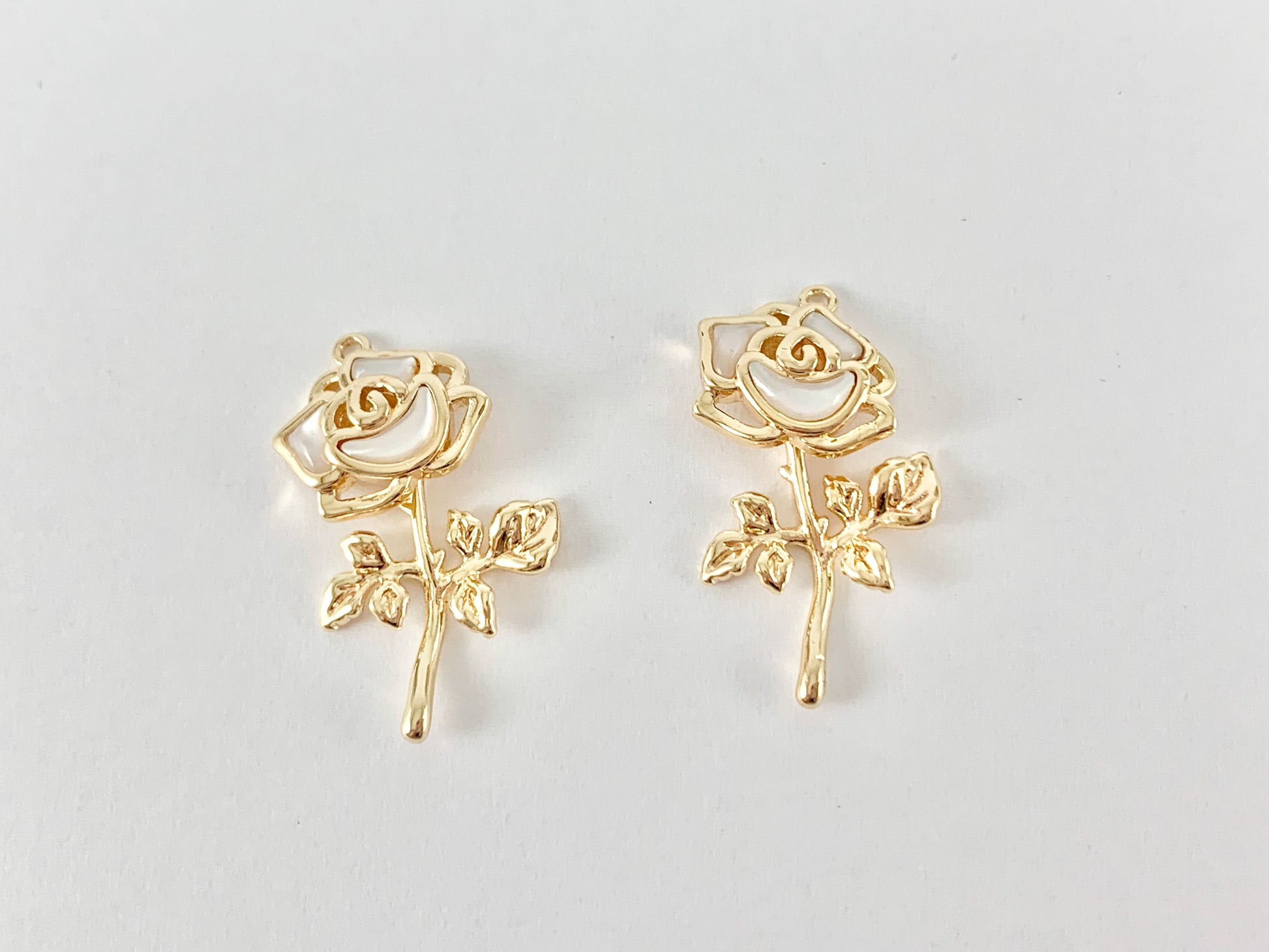 Delicate Gold Rose White Shell Dangle Pendants in 18K Gold plated Copper. These charms can be wonderful made into bracelets, dainty necklaces, earring drops and even used for crafts.