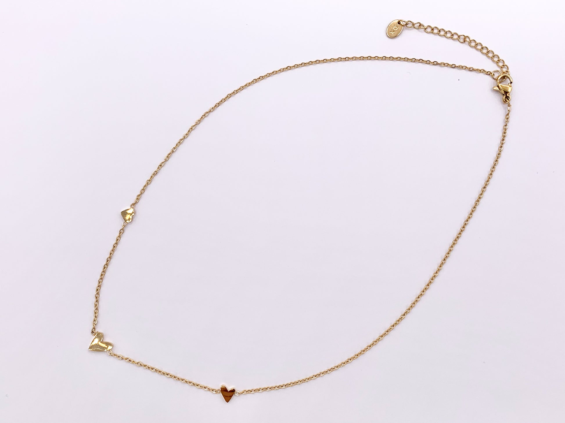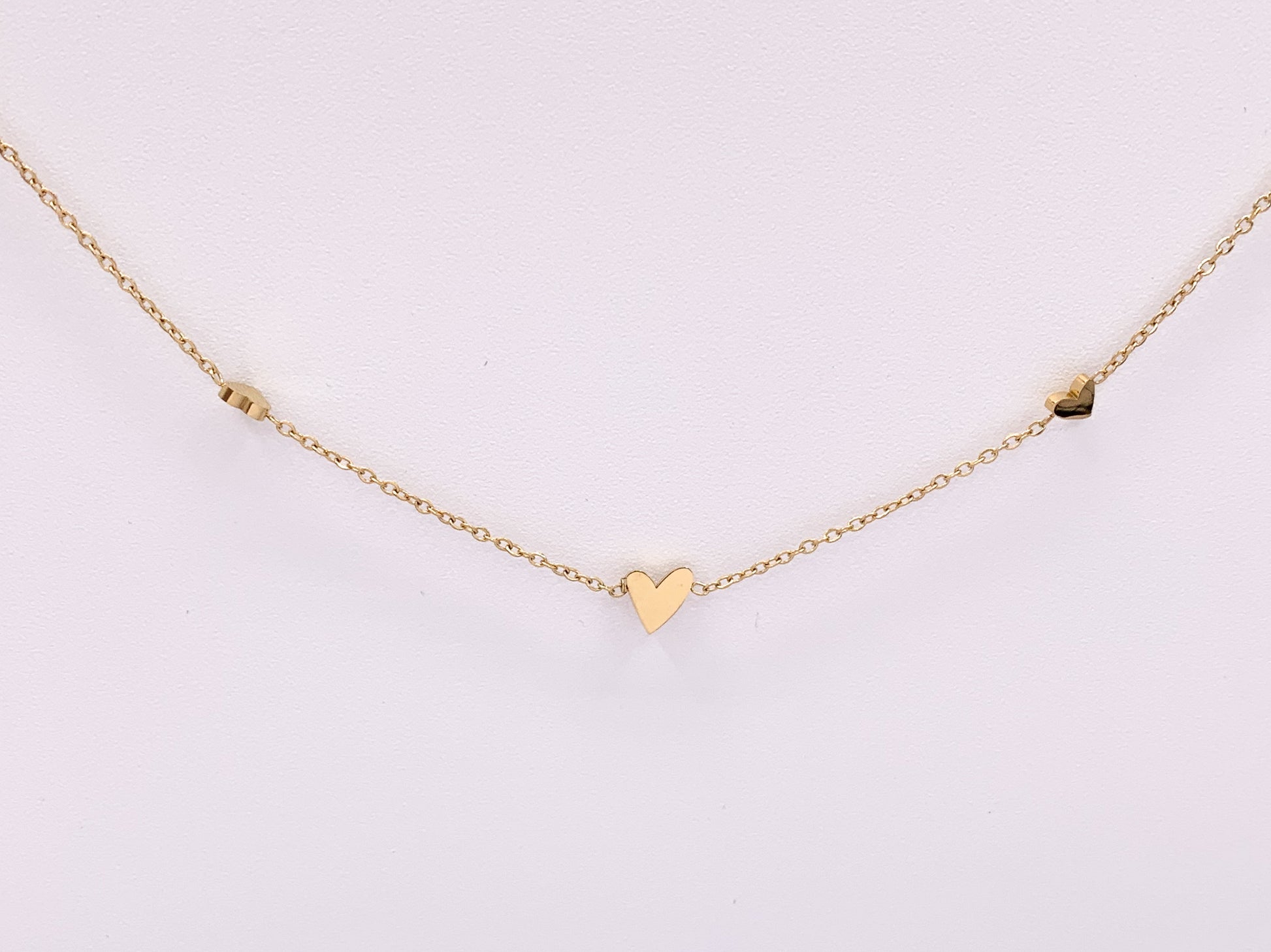 These delicate heart necklaces are made with Gold plated stainless steel.