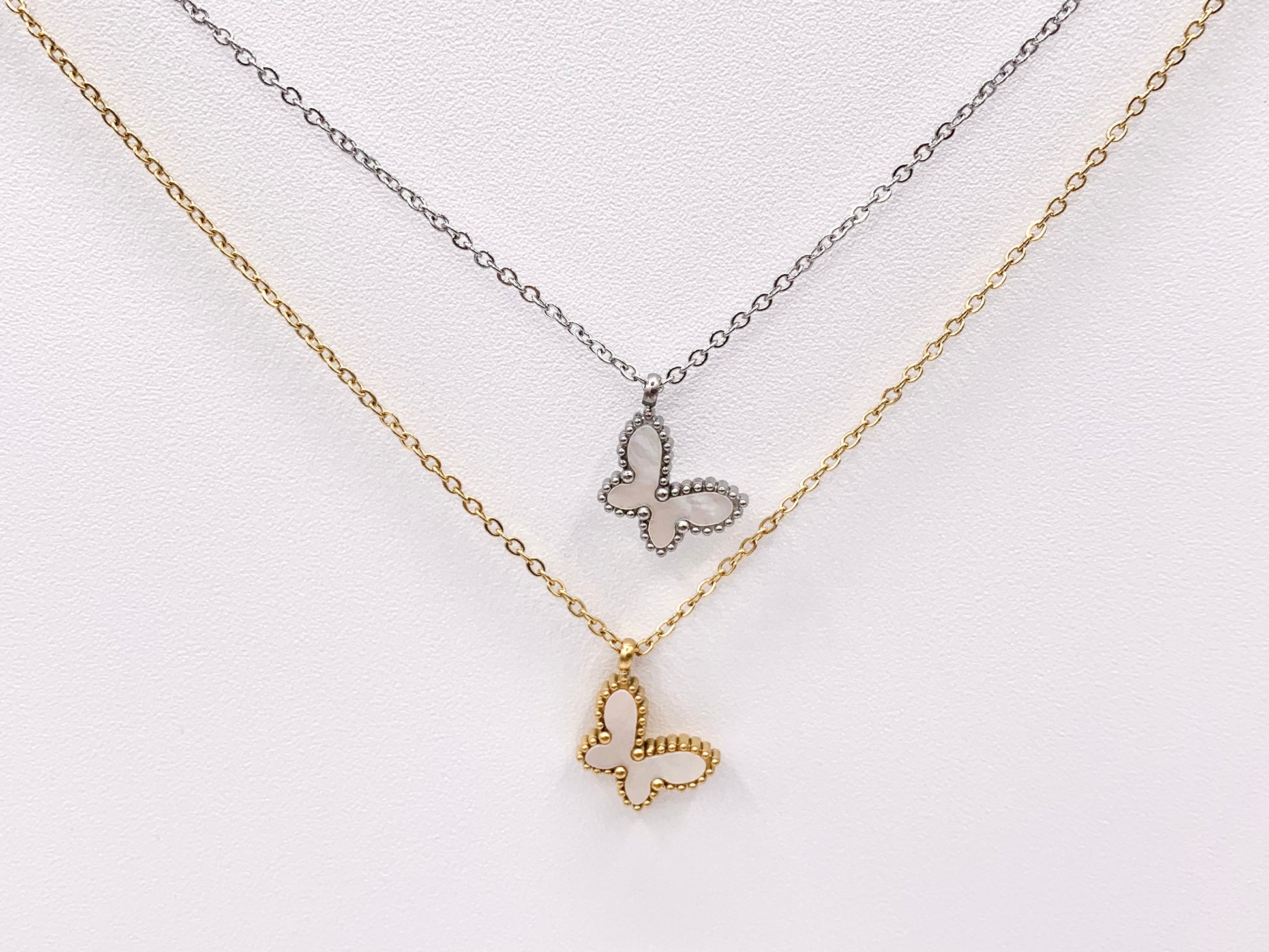 These delicate butterfly flexible necklaces are made with Gold/silver plated stainless steel.