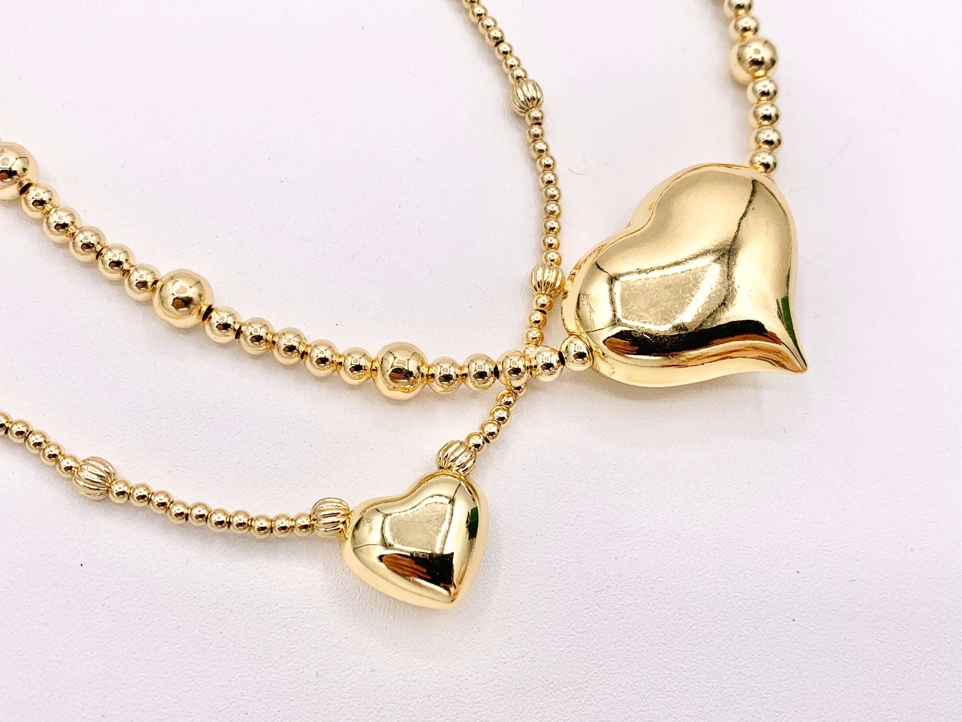 These delicate puffy heart necklaces are made with Gold plated copper.