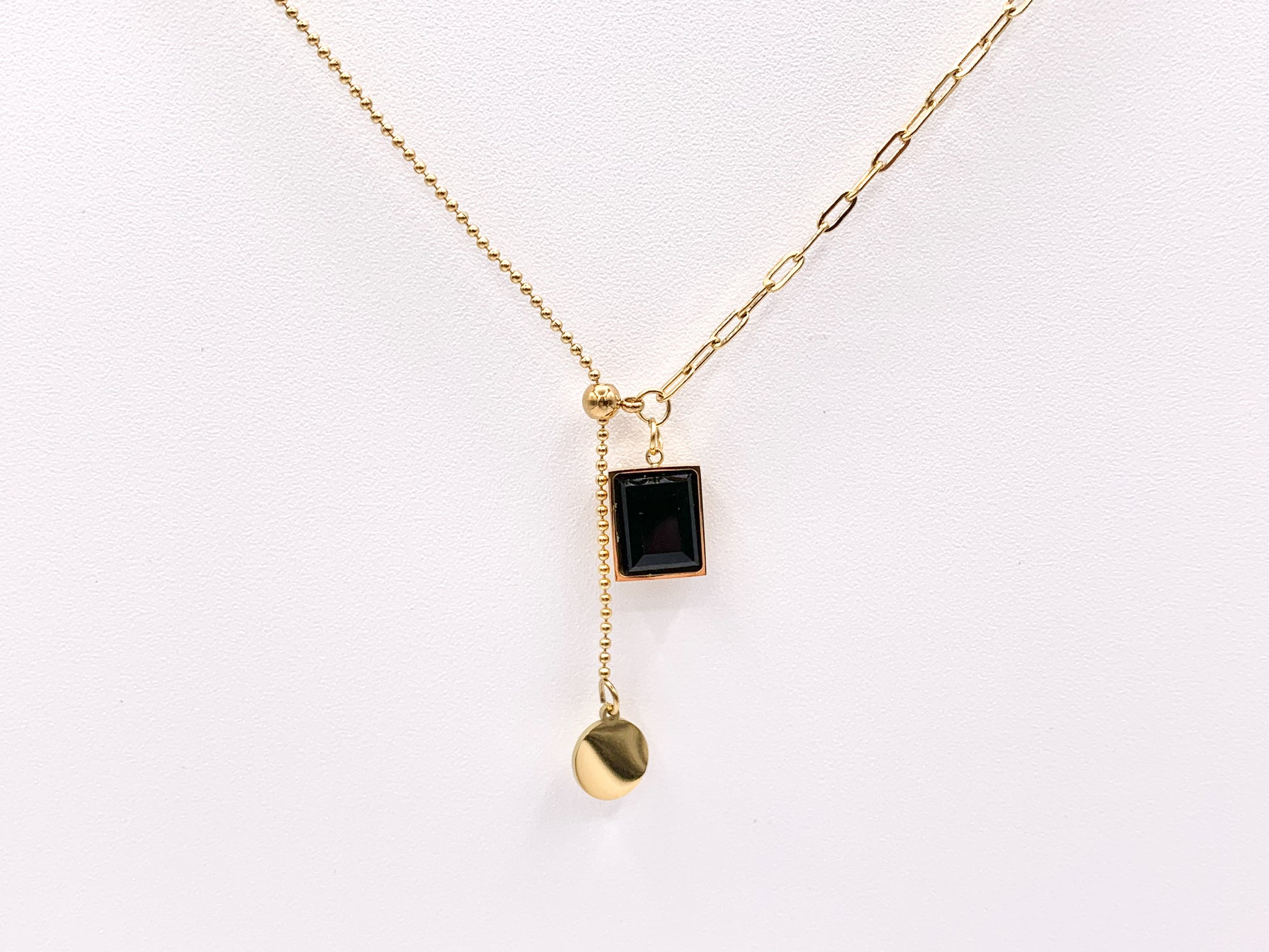 These delicate slider flexible necklaces are made with Gold plated stainless steel. The dangle charm part length can be adjusted.