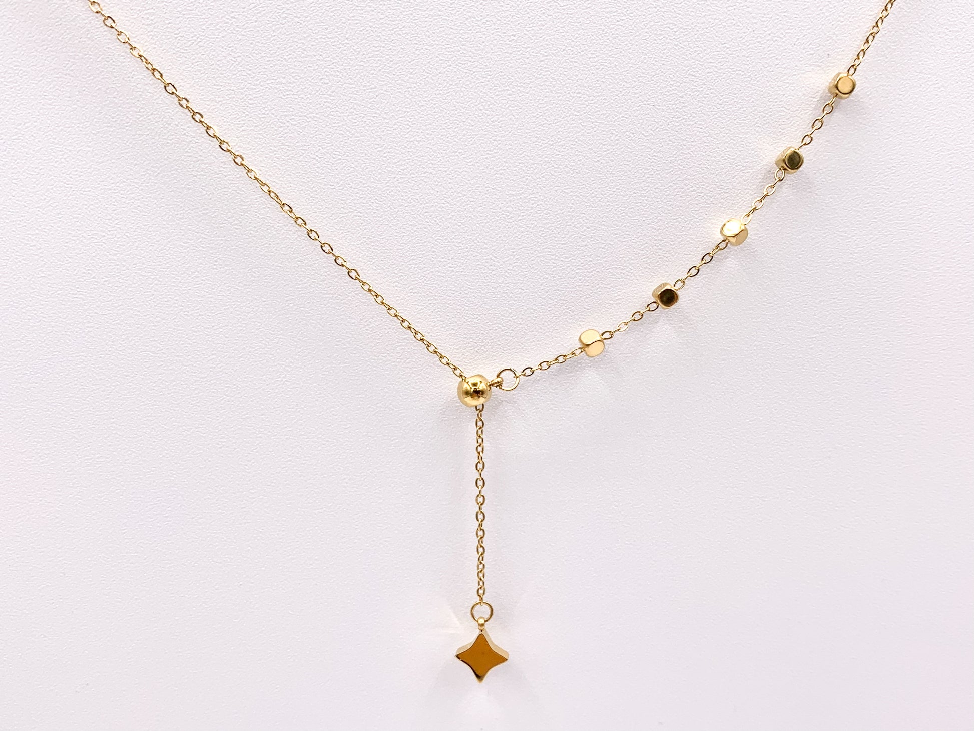 These delicate slider flexible necklaces are made with Gold/silver plated stainless steel. The dangle charm part length can be adjusted.