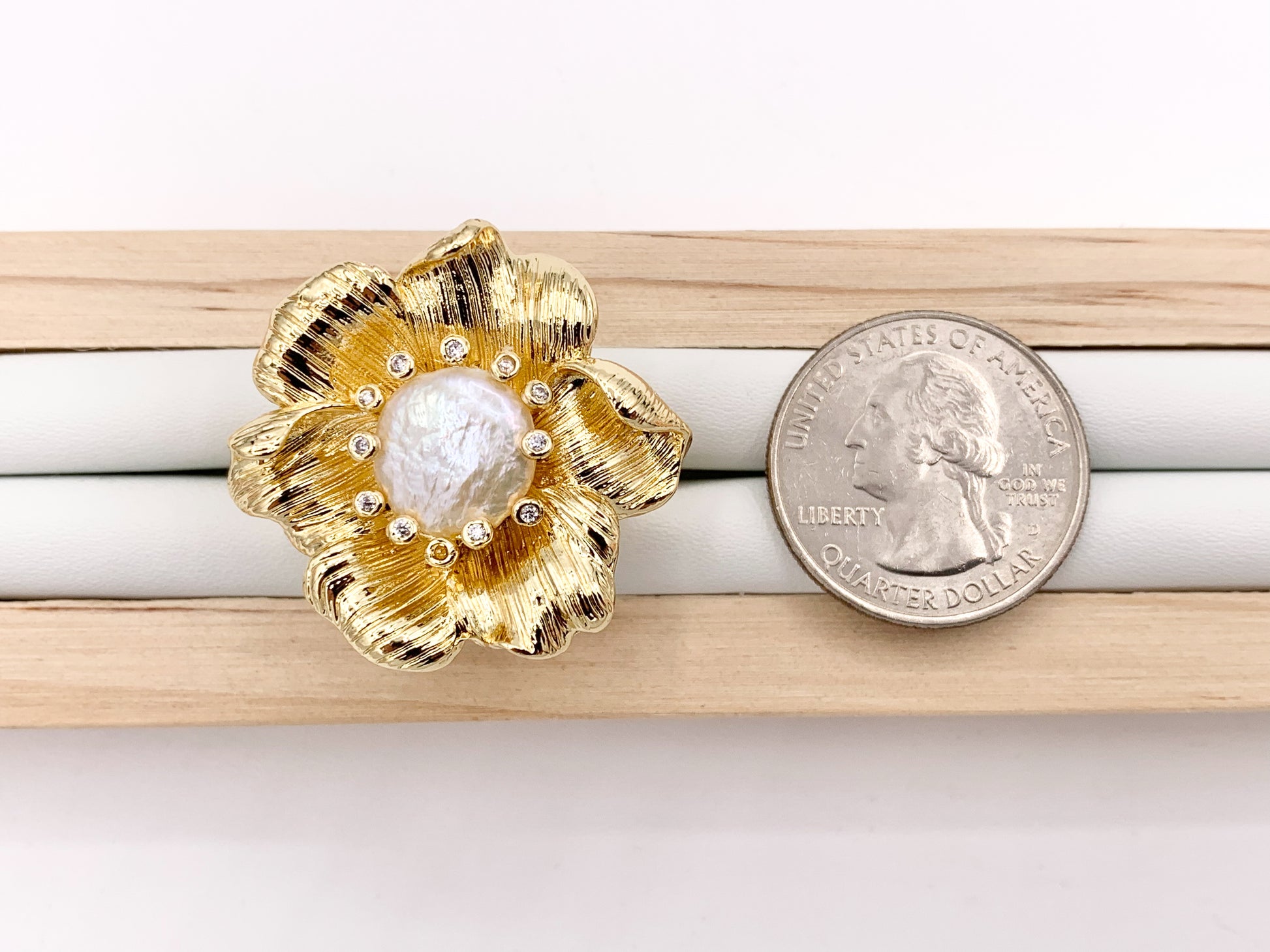 Freshwater Pearl Flower Rings in 18K Real Gold Plated Copper Adjustable Statement Ring