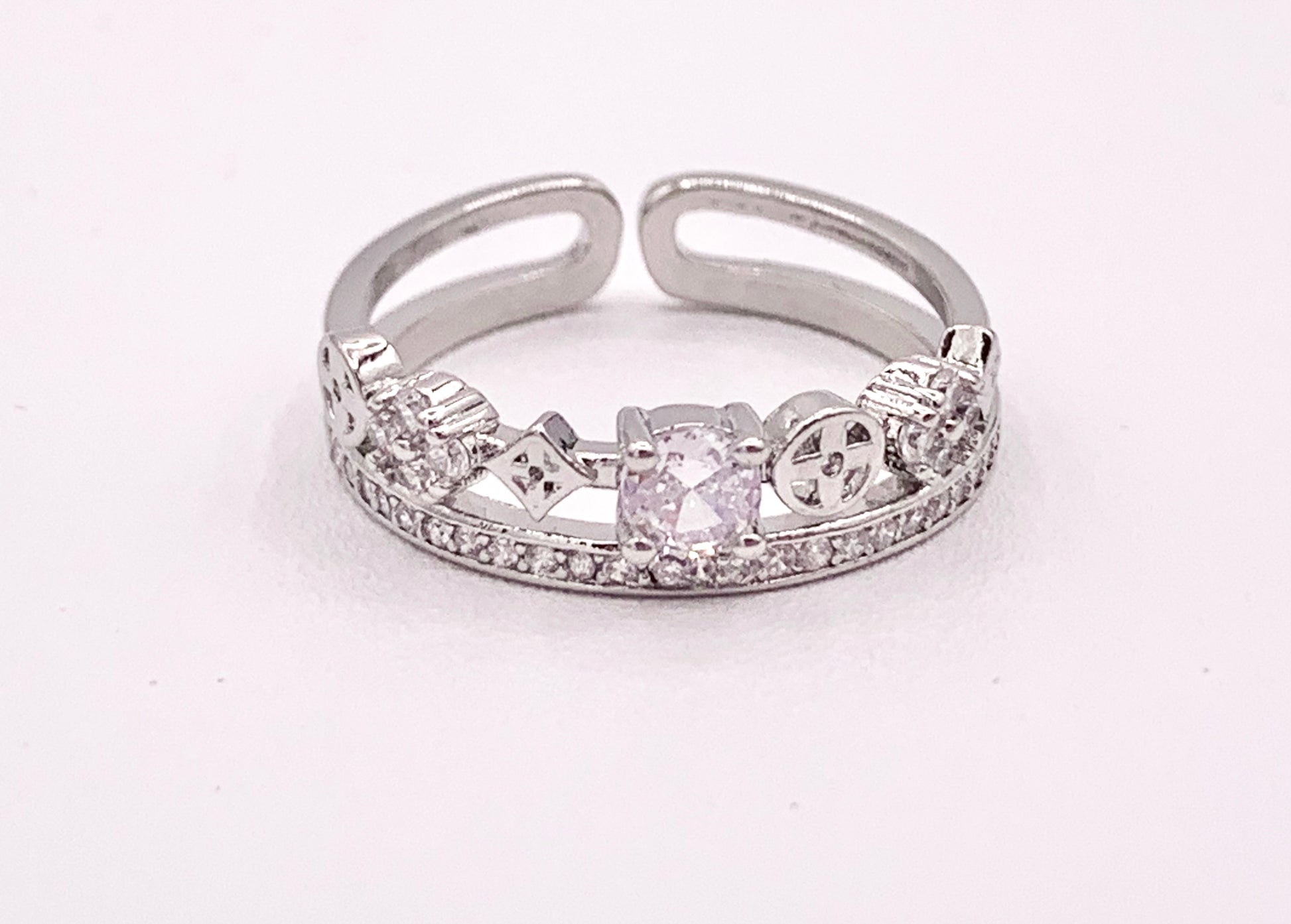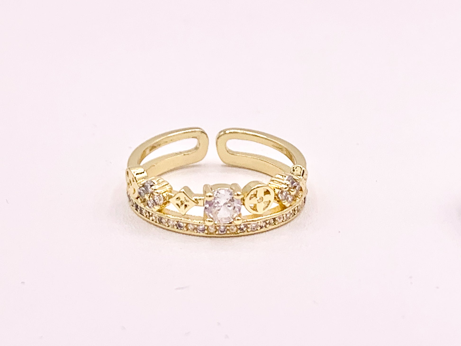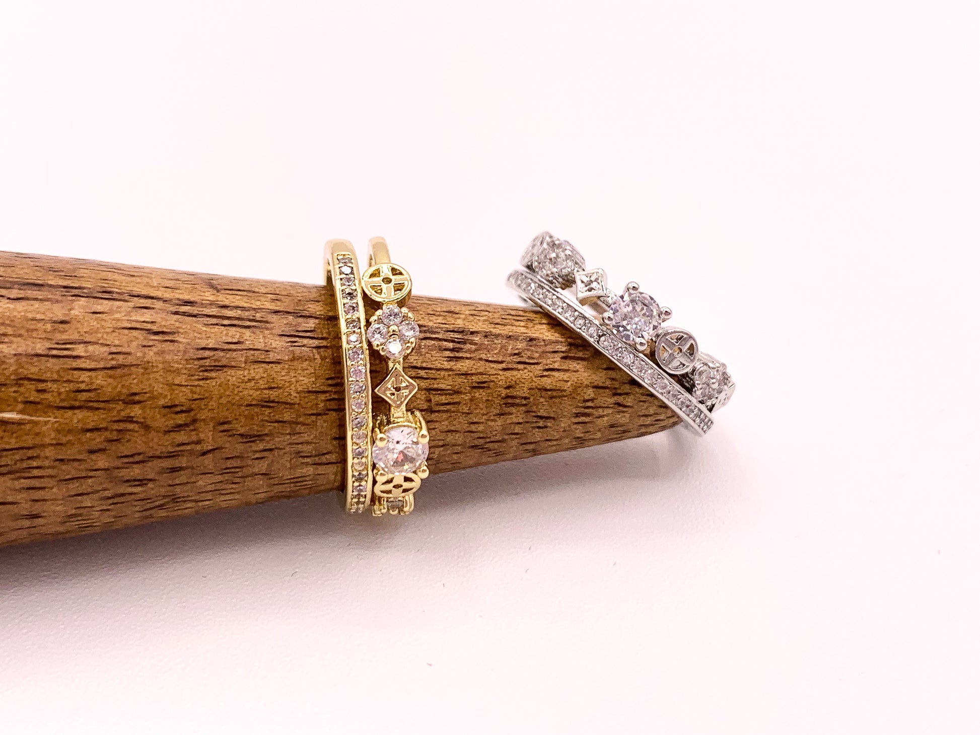 Double Stack Geometric Vintage CZ Pave Style Rings in 18K Gold or Silver Plated Copper