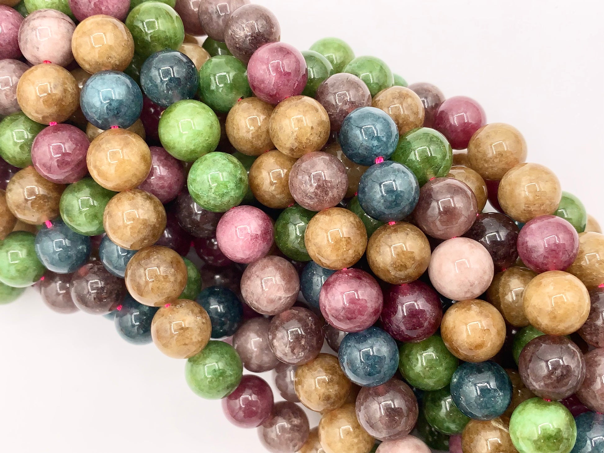 Dyed Malaysian Jade Round Smooth Shiny Natural Stone Beads Beautiful Dark Mixed Color Beads 4mm 6mm 8mm 10mm Around 15"