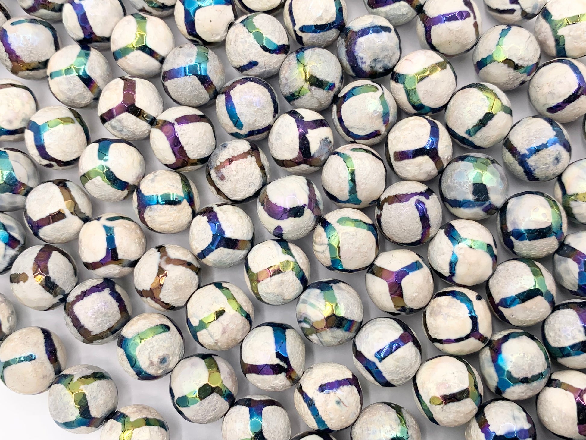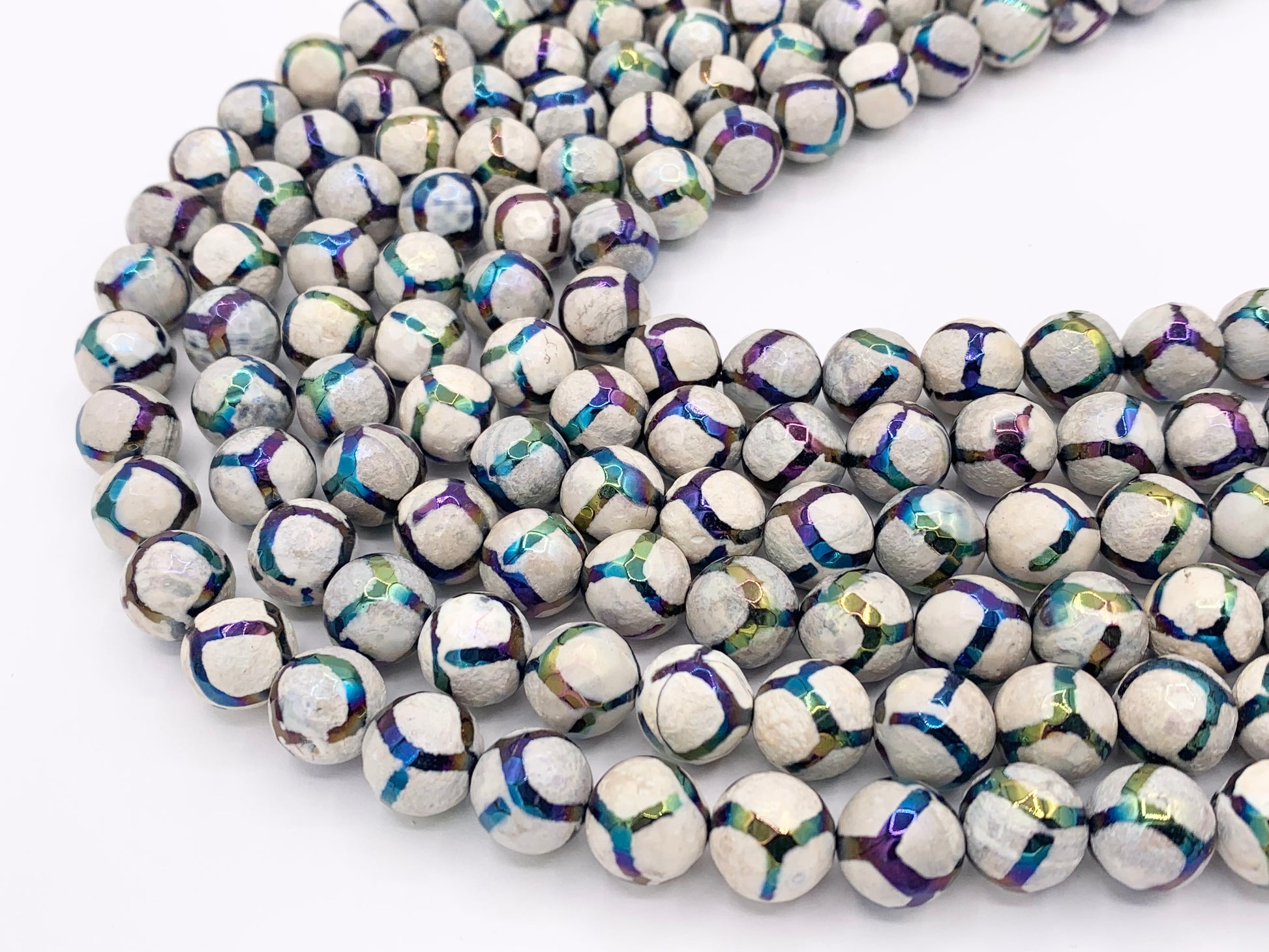 Electroplated Tibetan Agate Mystic Coated Faceted Stripe Agate Beads 6mm 8mm 9-10mm 11-12mm Natural Stone Beads