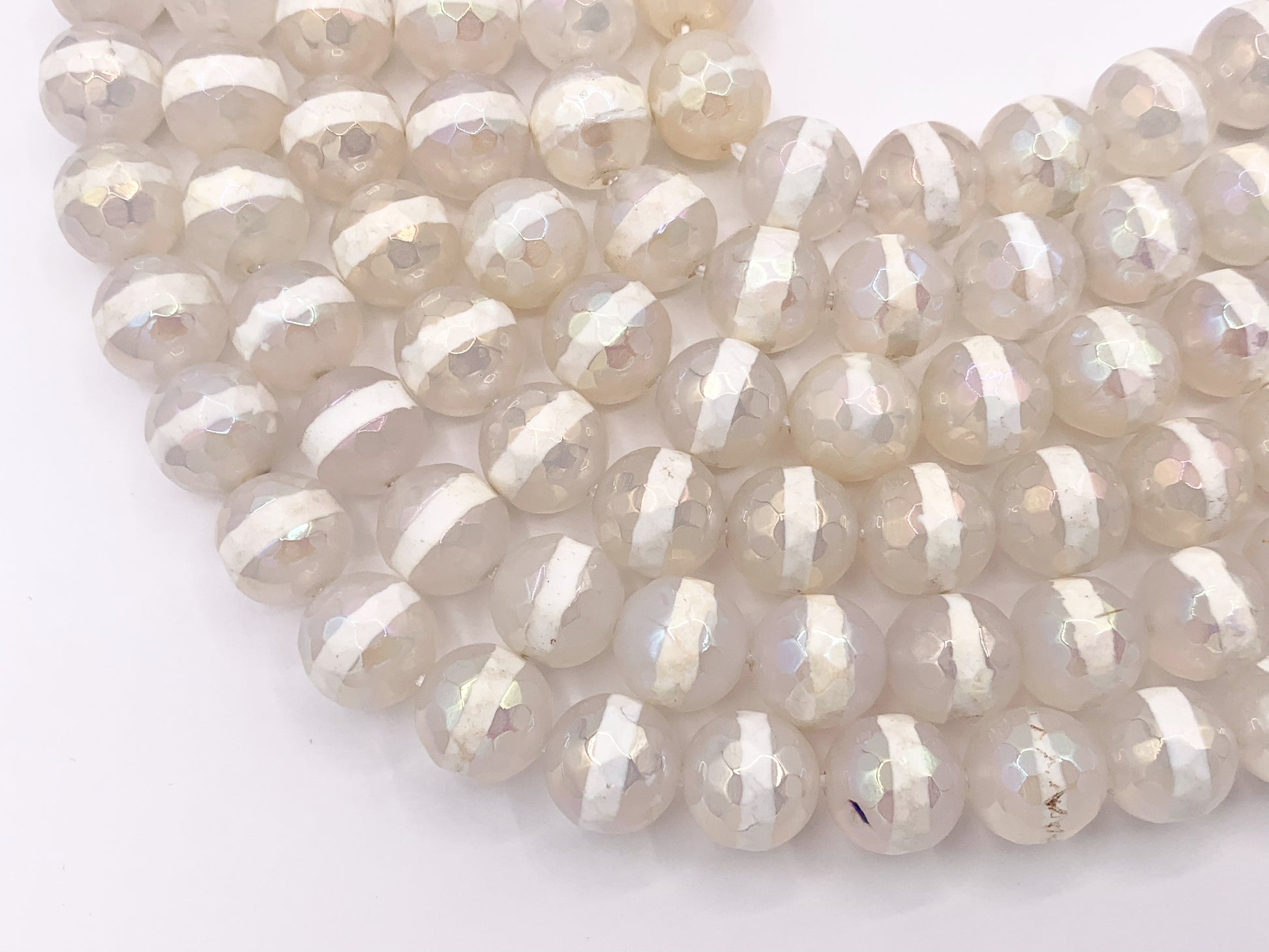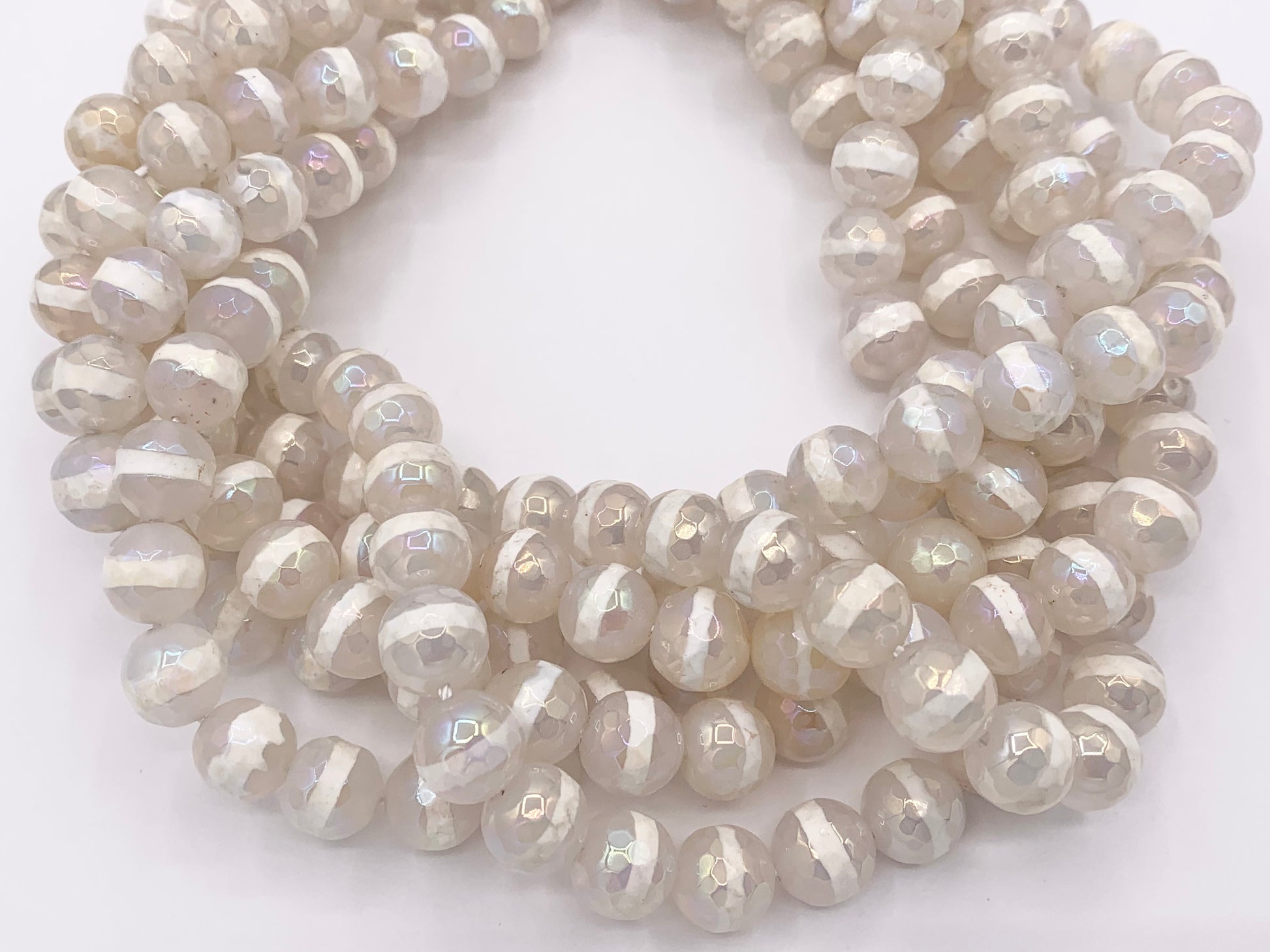 Electroplated Tibetan Agate Mystic Coated Faceted White Stripe Agate Beads 6mm 8mm 9-10mm 11-12mm Natural Stone Beads