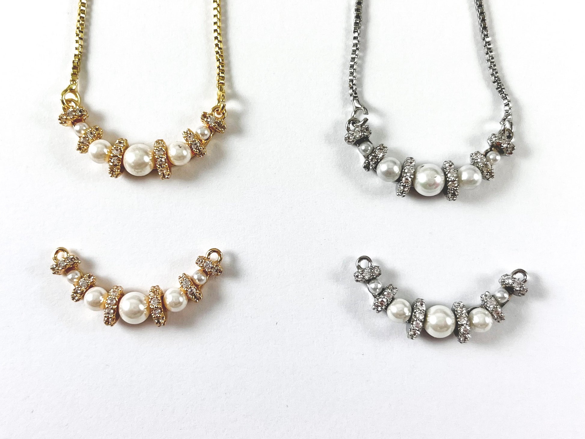 Elegant Pearl CZ Pave Curve Connector in 18K Gold/Silver Plating for DIY Jewelry Making. They are unique and beautiful. Perfect made into necklaces and even crafts!