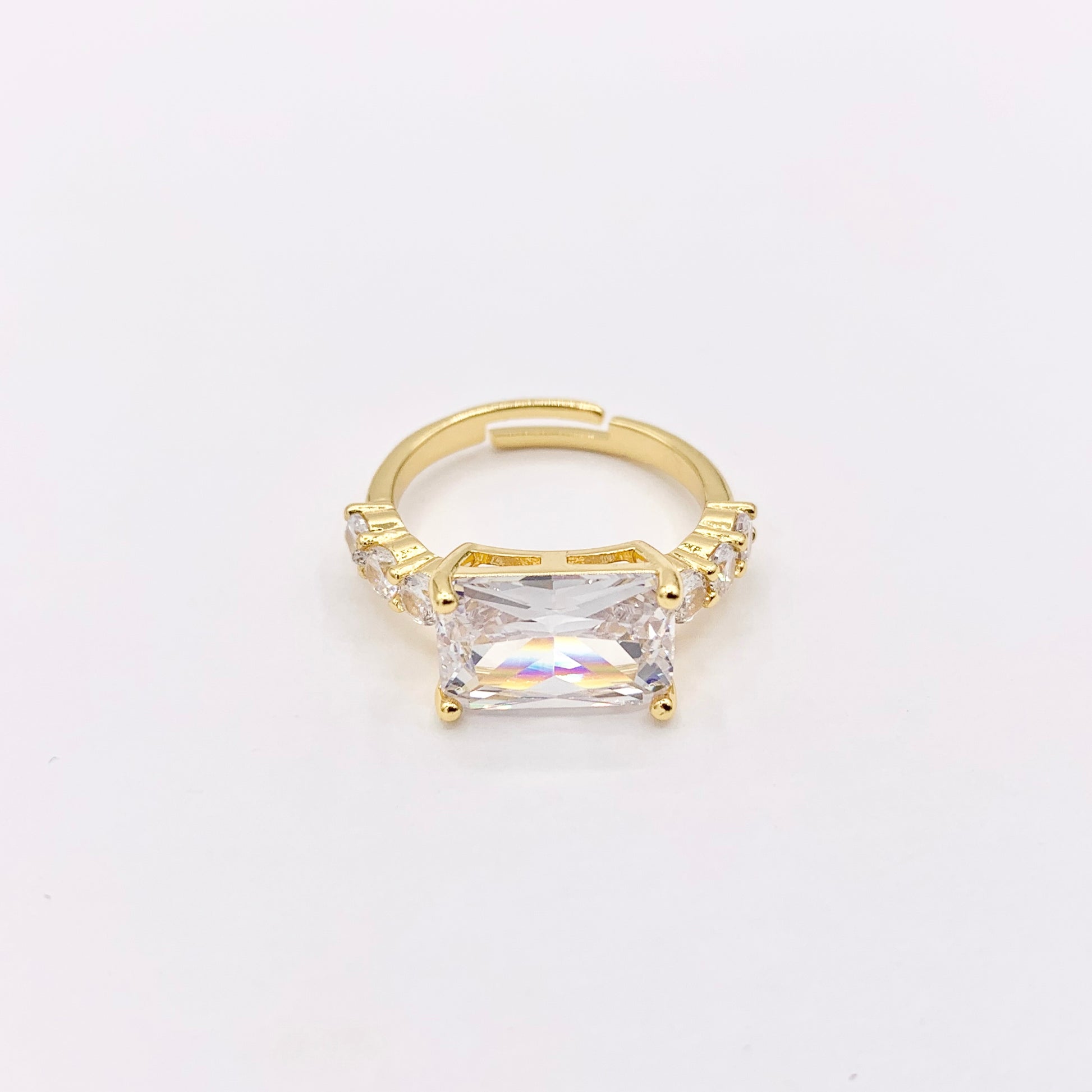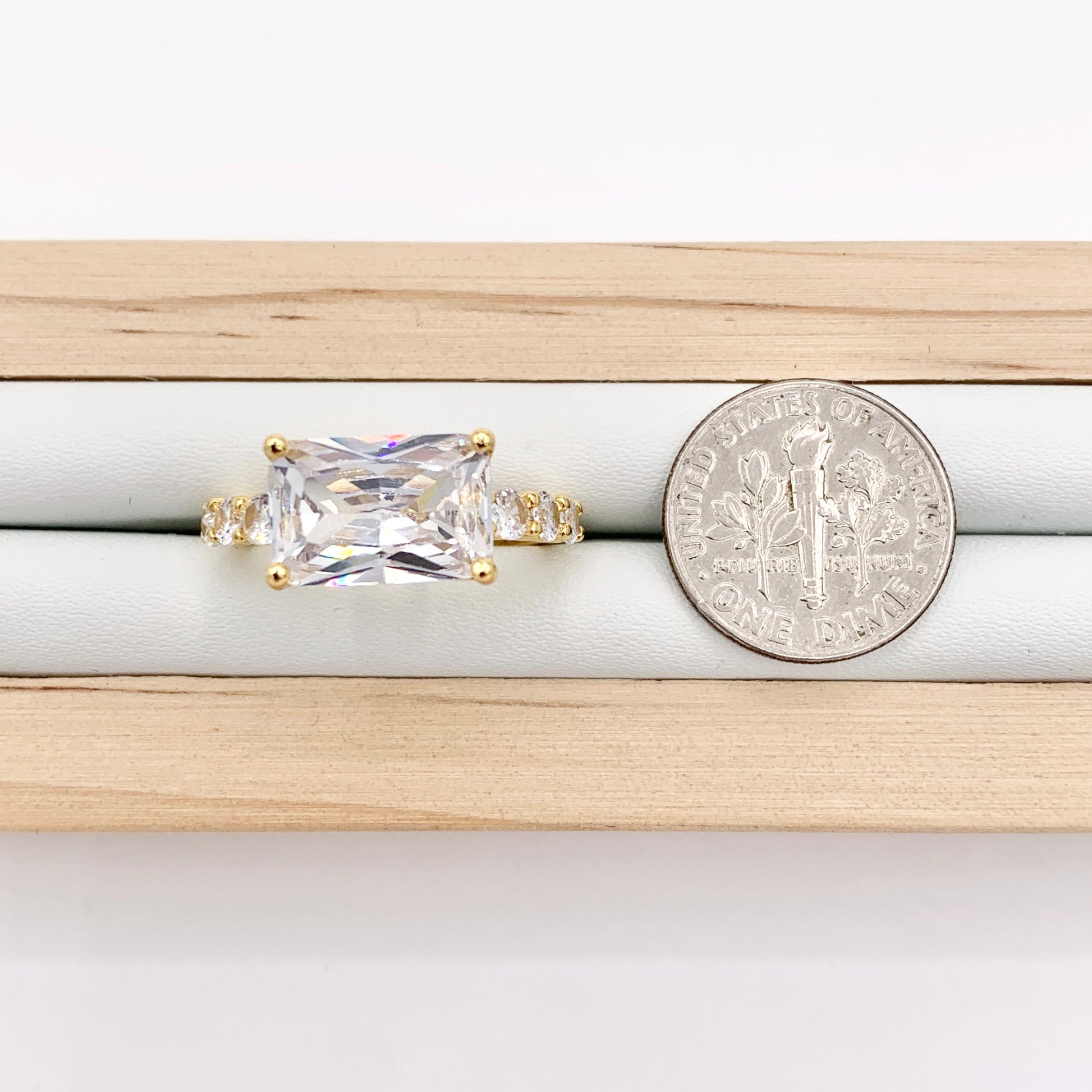Emerald Cut Cubic Zirconia Rectangle Rings in 18K Gold or Silver Plated Copper