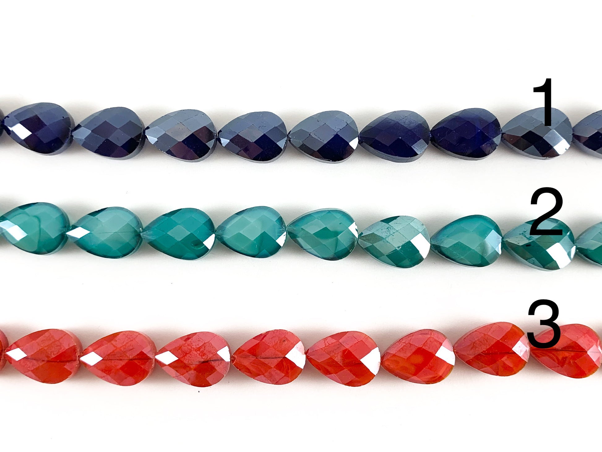 Faceted Shiny 13x18mm Dyed Jade Glass Teardrop Crystal Strands