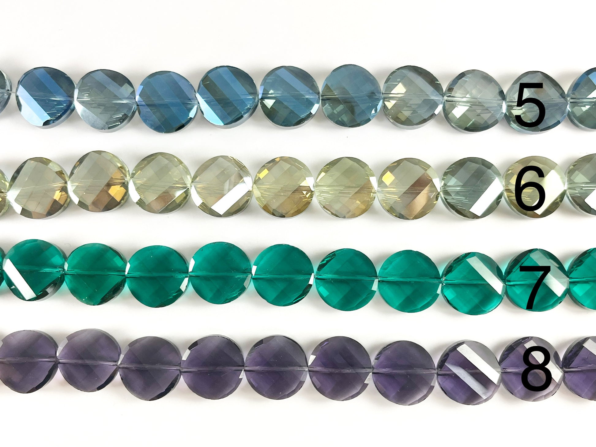 Faceted Shiny 18mm Twisted Coin Crystal Beads Dyed Glass Beads Strand 11 Colors Available!! Around 10"