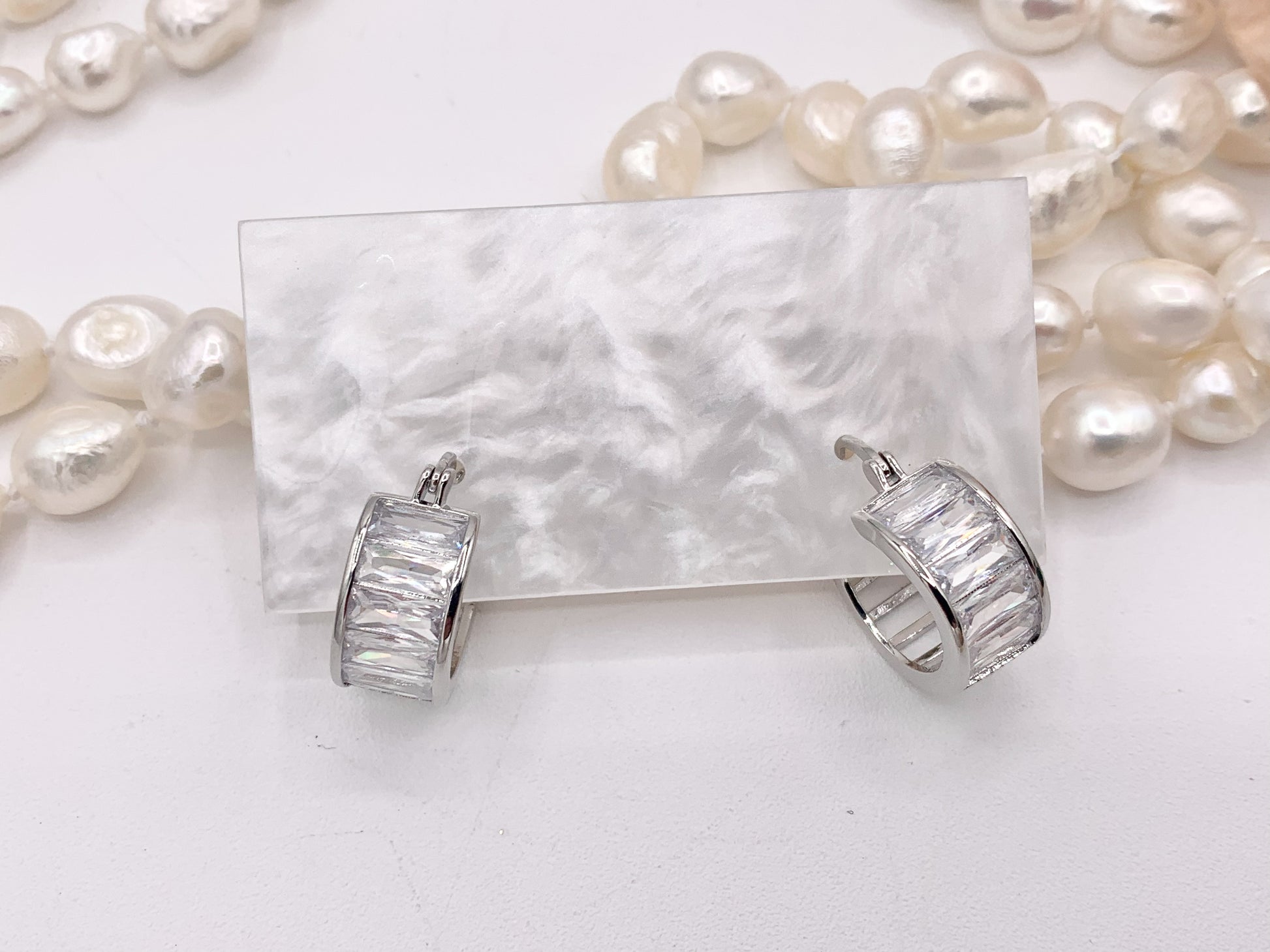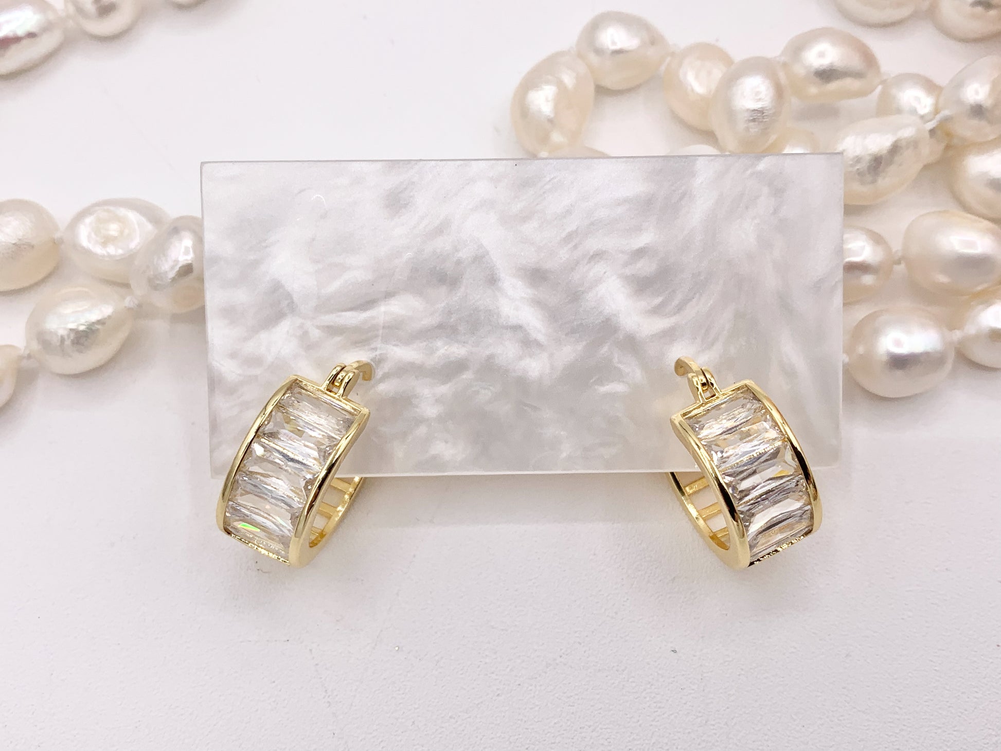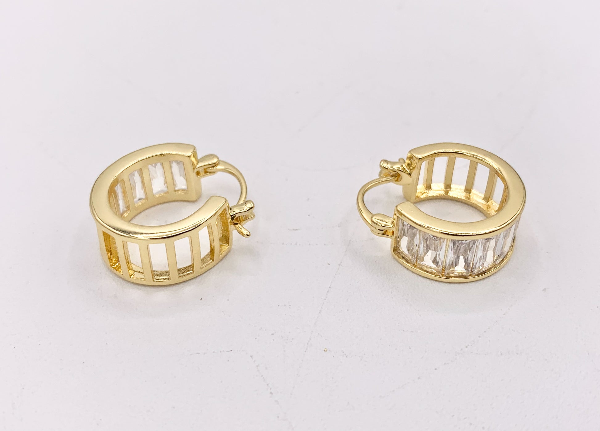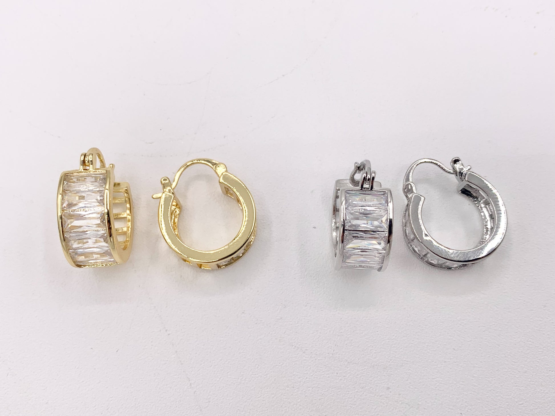 Fancy Baguette Earring Hoop Huggies in Real Gold/Silver 18K Micro Pave CZ 3 PAIRS
