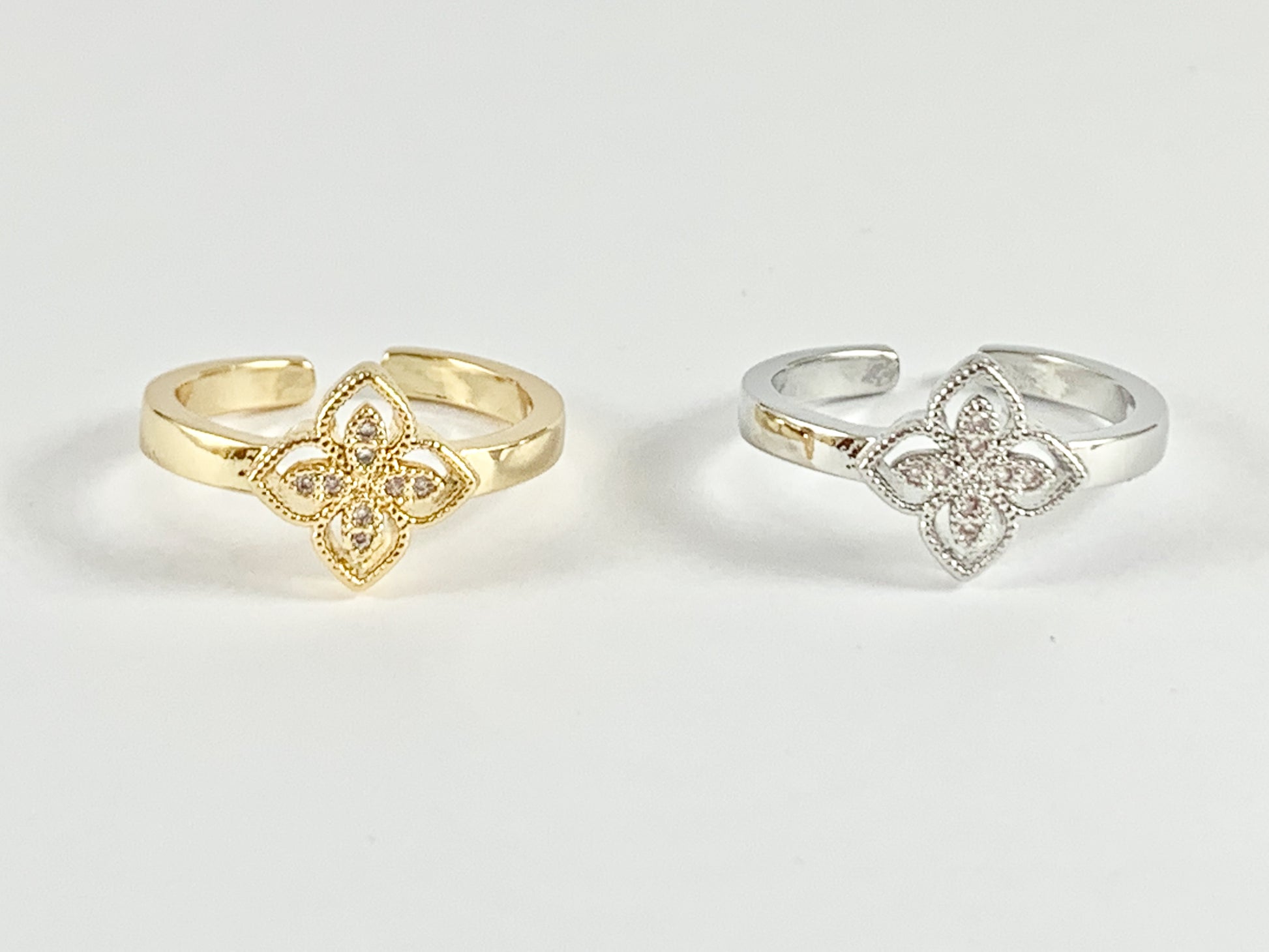 Four Leaf Clover Rings in CZ Pave Rhinestones 18K Gold or Silver plated over Copper