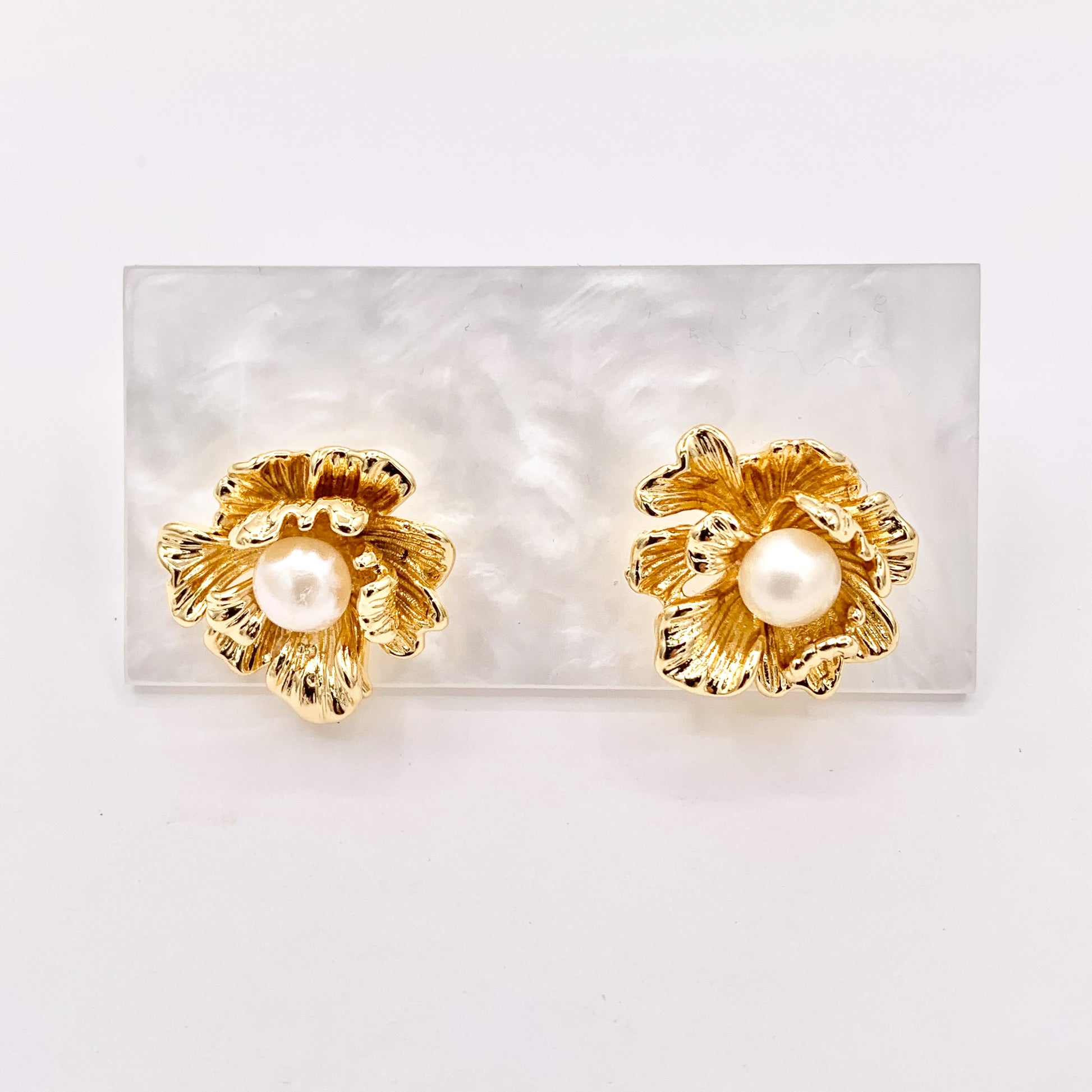These freshwater pearl flower earrings are real gold 18K plated with a brass base.