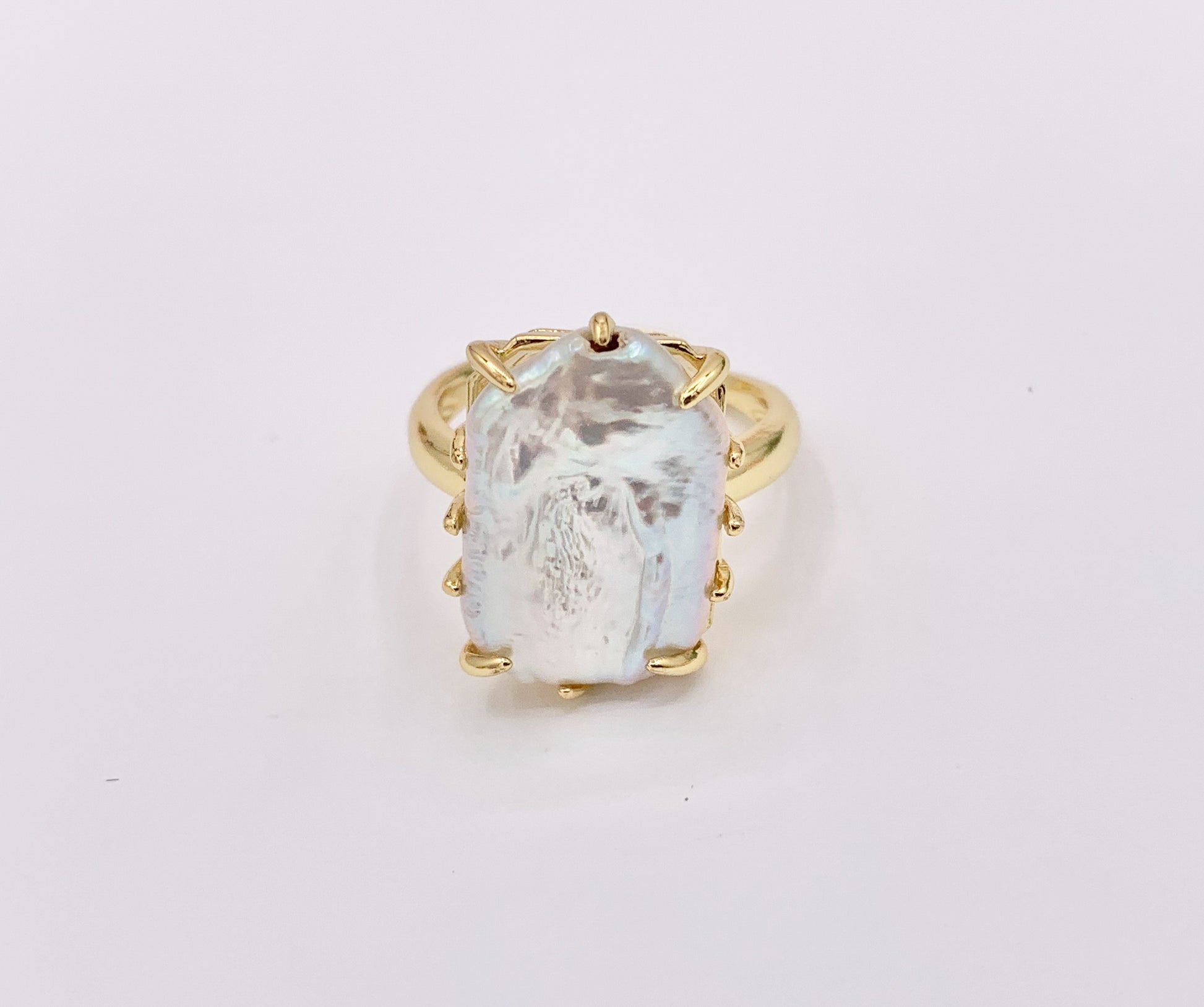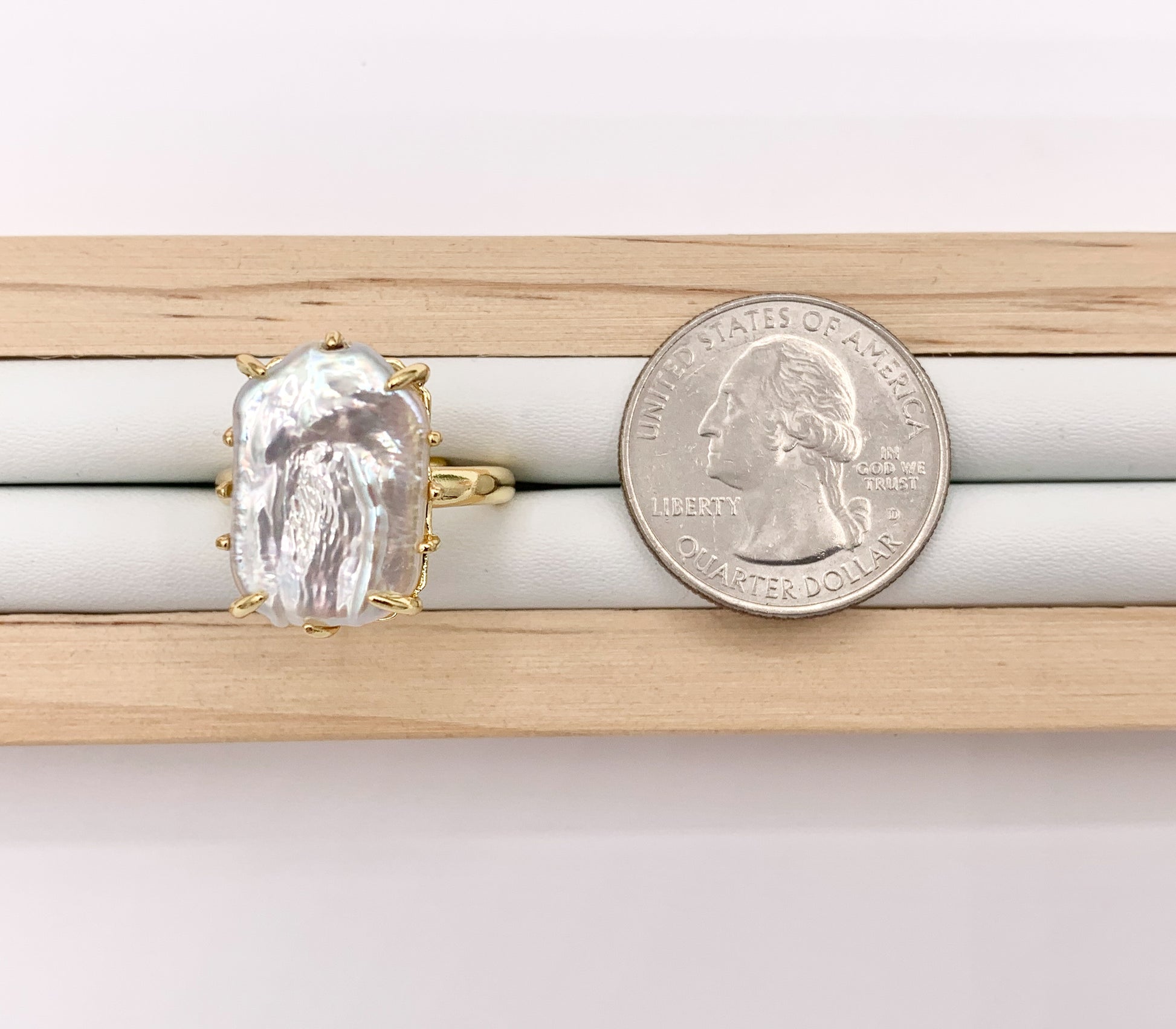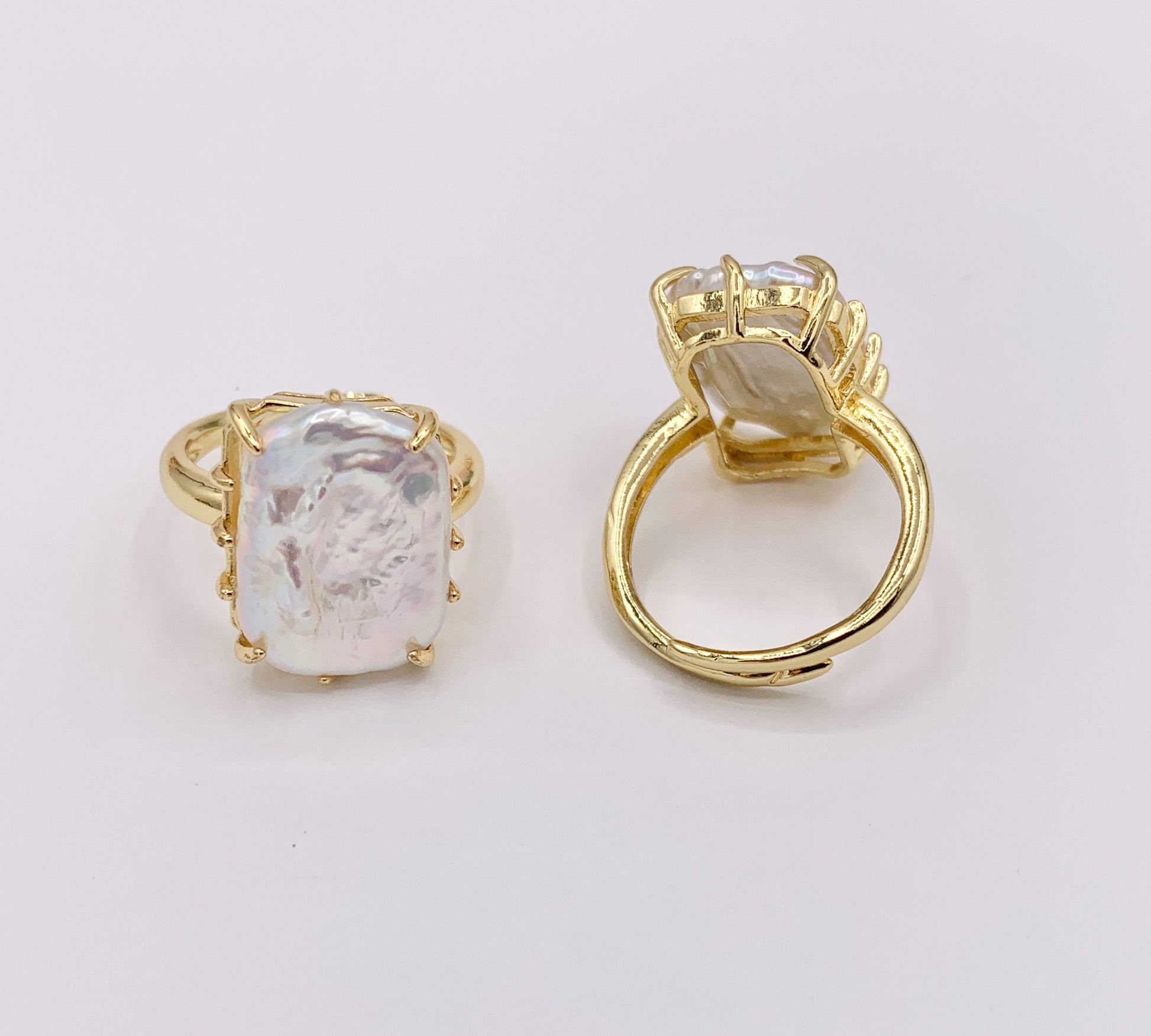 Freshwater Pearl Rings in 18K Real Gold Plated Copper Adjustable Statement Ring