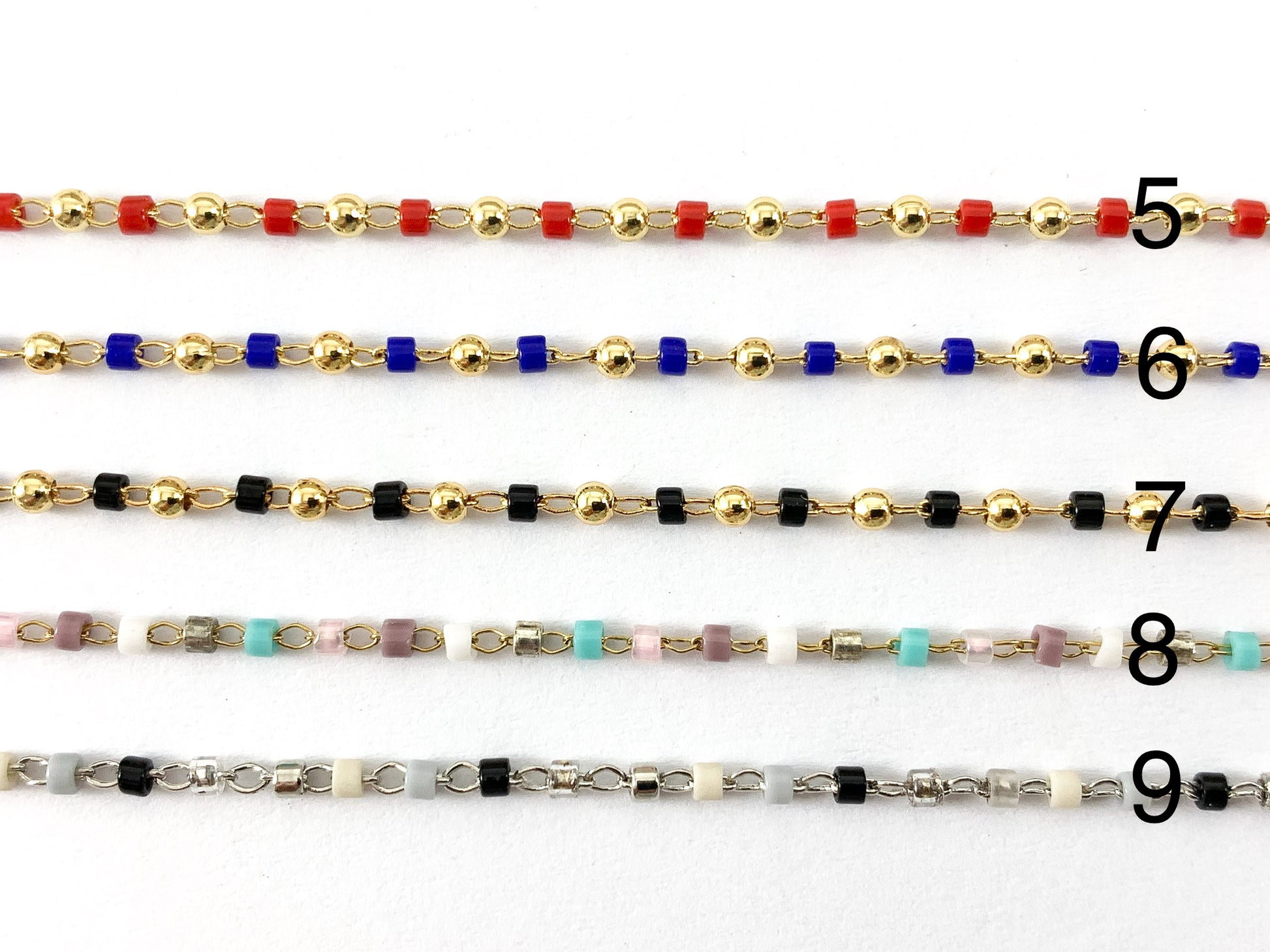 Gold 18K Plated Colorful Miyuki Beads with Gold Round Balls Chain For Jewelry Making And Designs