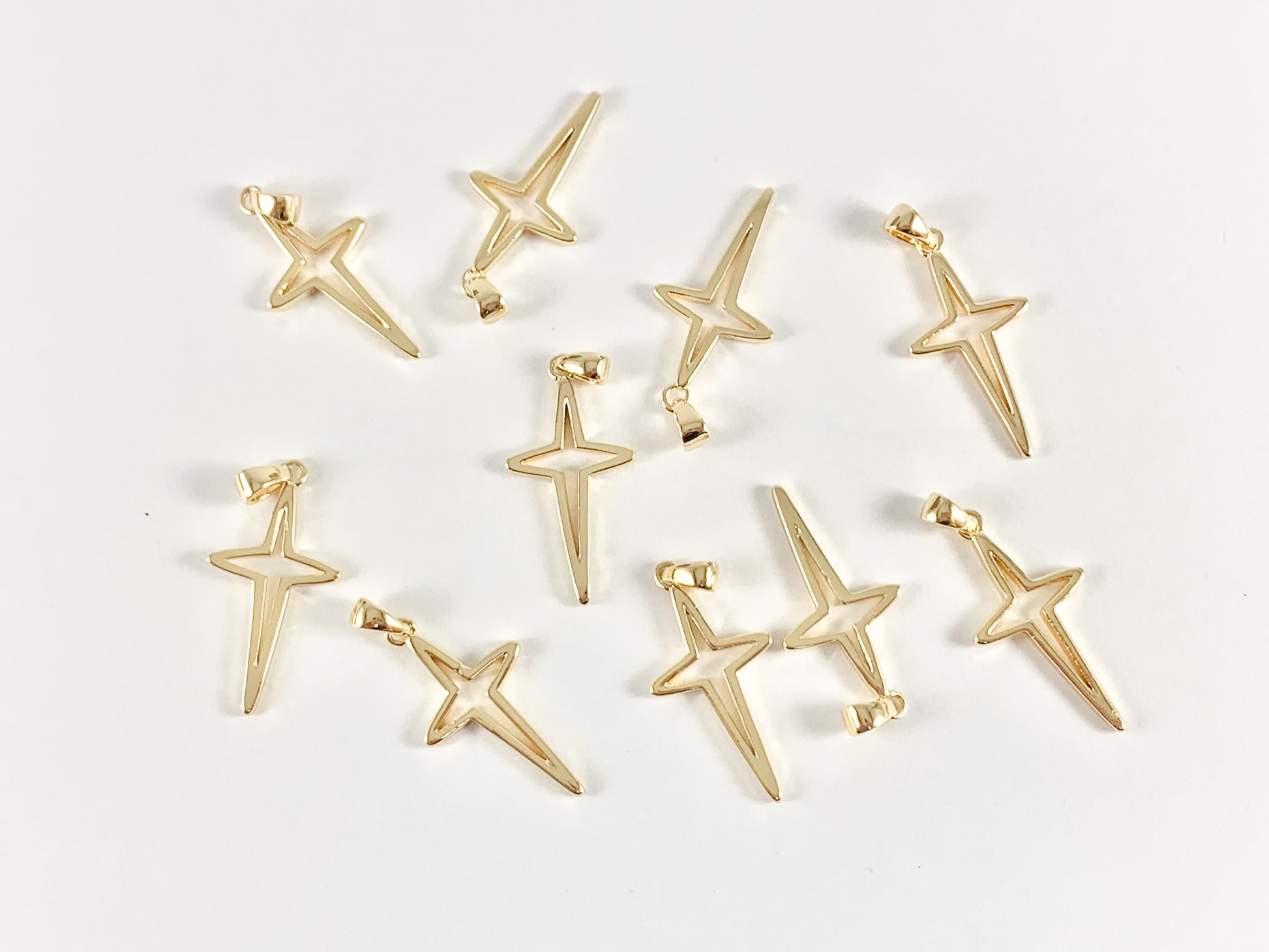 Gold Plated Cross Charms Pendants in 18K gold plated Copper. These charms can be wonderful made into bracelets, dainty necklaces, earring drops and even used for crafts.